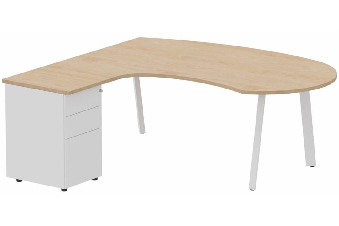 Plan compact 90° manager sur caisson HB métal 190 x 141 x 104 x 60 cm, 3 tiroirs, plateau hêtre, structure blanc