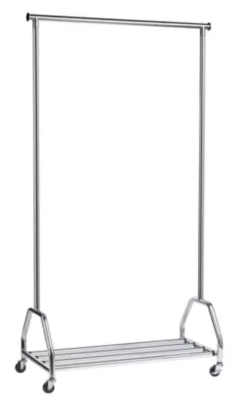 • Portant solide équipé d’1 galerie inférieure • Roulettes orientables de haute qualité : déplacements aisés. • Matériaux : tubes en acier et ABS. • L. x H. x P. : 90 x 165 x 42 cm.