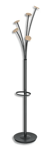 Portemanteau CELEBRATION 5 patères, porte-parapluie du fût noir et patères bois