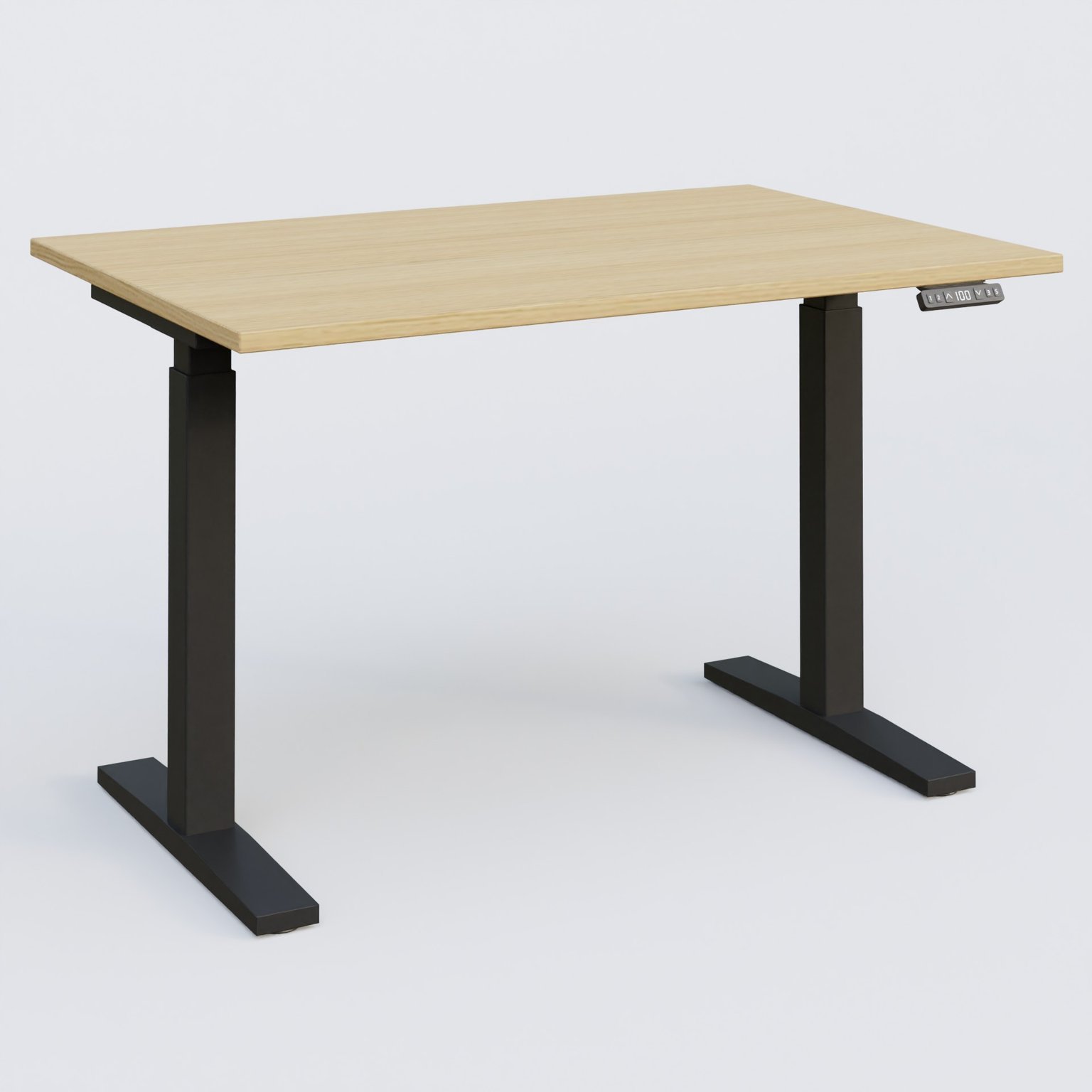 Poste solo 120*80 réglable en hauteur éléctriquement de 70-120 cm gamme KPro2. Plateau Chêne clair et pietement Noir.