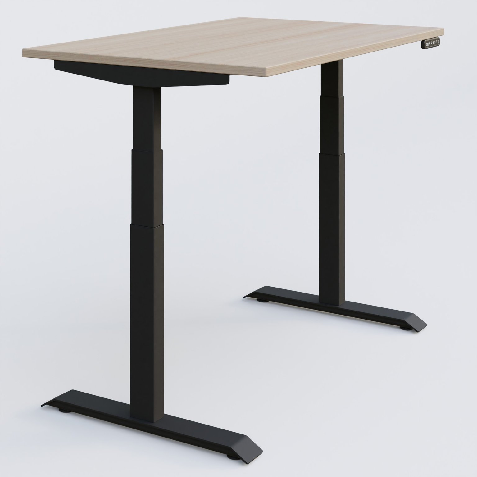 Poste solo 120*80 réglable en hauteur éléctriquement de 65-130 cm gamme KPro3. Plateau Chêne clair et pietement Noir. cheneCe Noir (NR/NM)