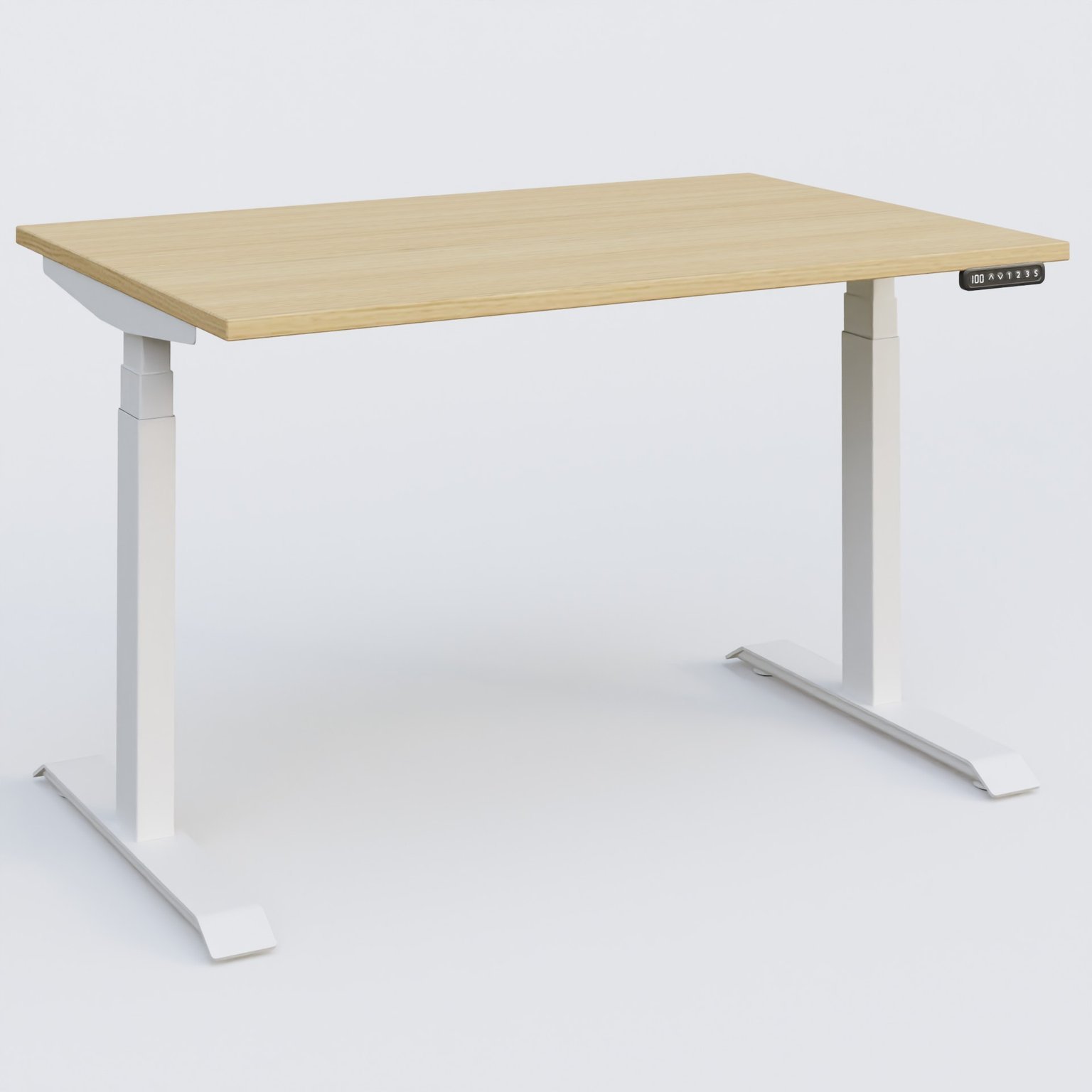Poste solo 120*80 réglable en hauteur éléctriquement de 65-130 cm gamme KPro3. Plateau Chêne clair et pietement Blanc.