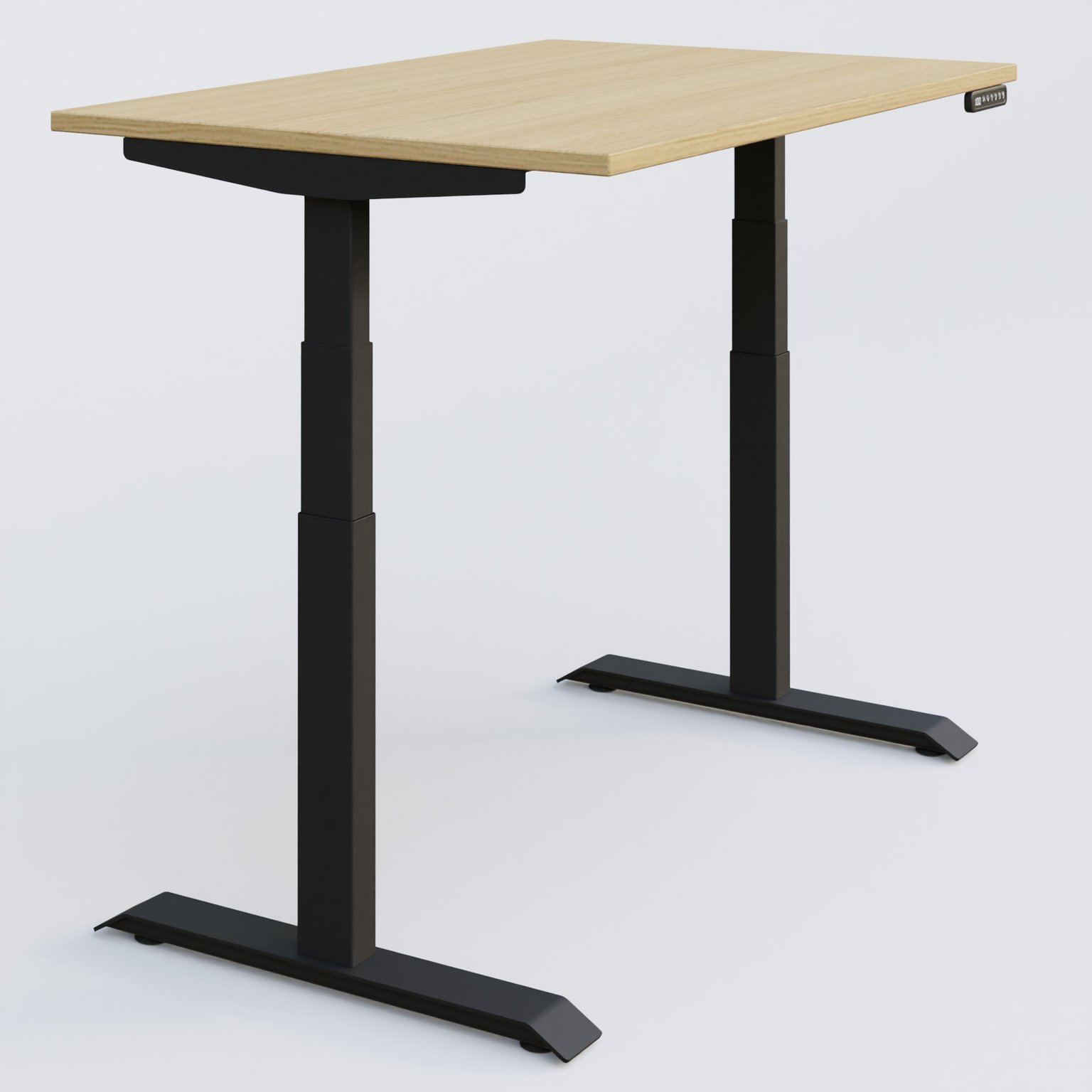 Poste solo 120*80 réglable en hauteur éléctriquement de 65-130 cm gamme KPro3. Plateau Chêne clair et pietement Noir.