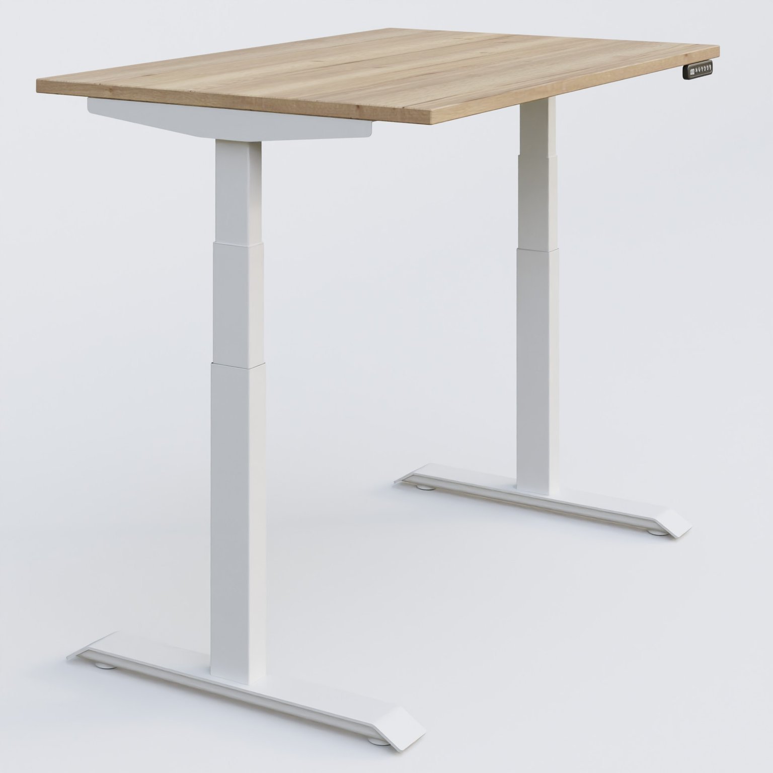 Poste solo 120*80 réglable en hauteur éléctriquement de 65-130 cm gamme KPro3. Plateau Chêne naturel et pietement Blanc.