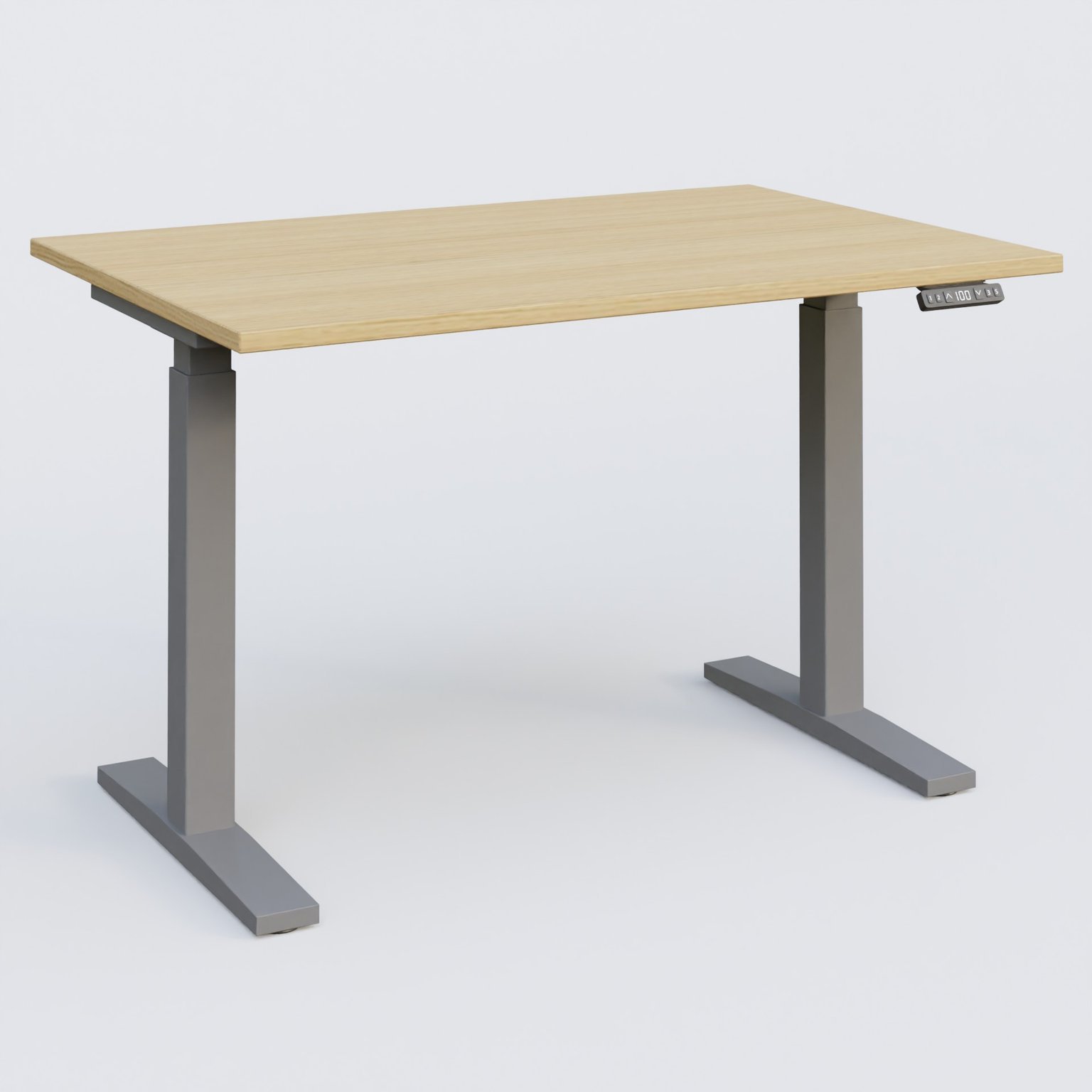 Poste solo 120*80 réglable en hauteur éléctriquement de 70-120 cm gamme KPro2. Plateau Chêne clair et pietement Aluminium.