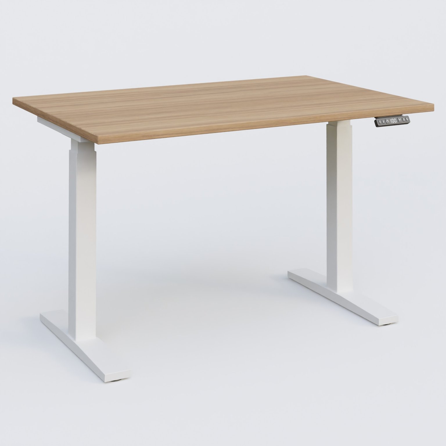 Poste solo 120*80 réglable en hauteur éléctriquement de 70-120 cm gamme KPro2. Plateau Noyer et pietement Blanc.