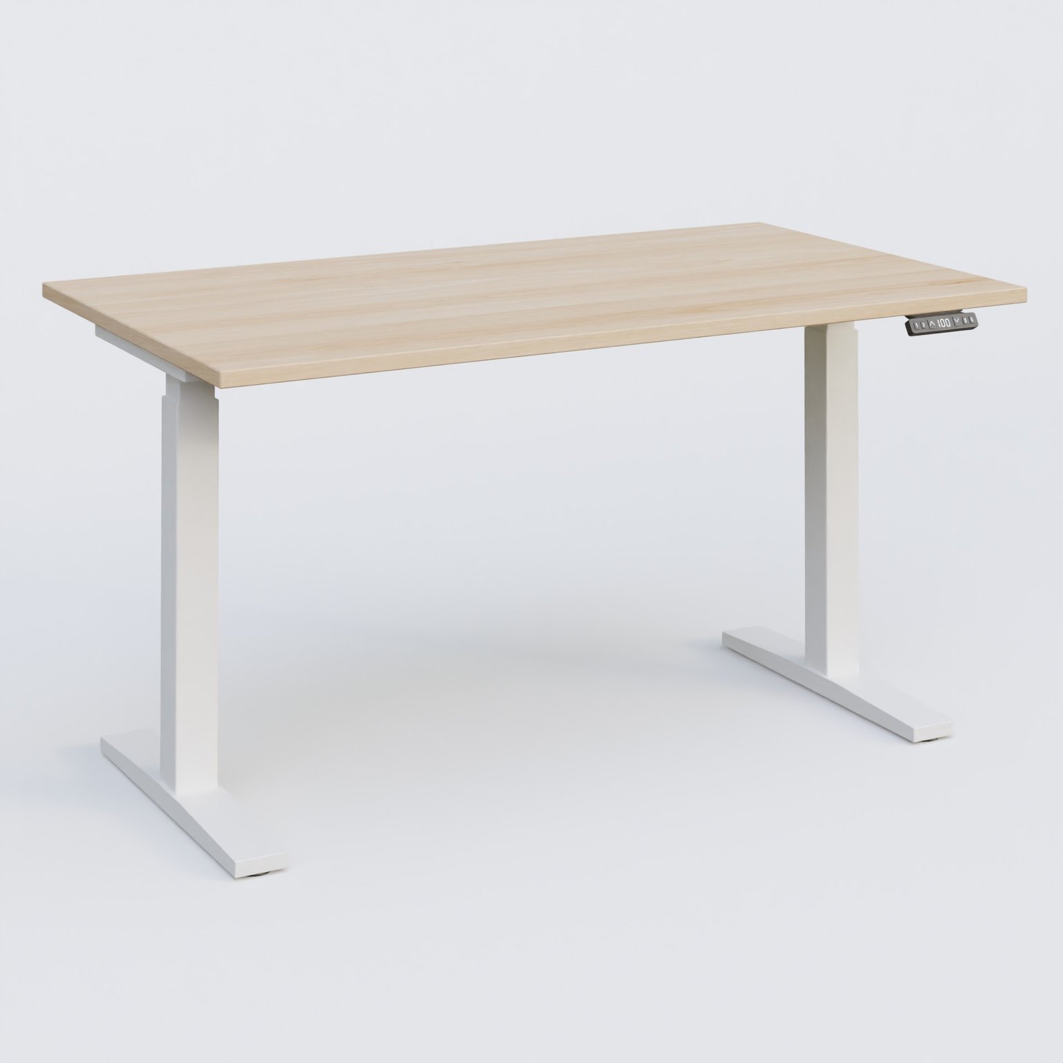 Poste solo 140*80 réglable en hauteur éléctriquement de 70-120 cm gamme KPro2. Plateau Hêtre et pietement Blanc.