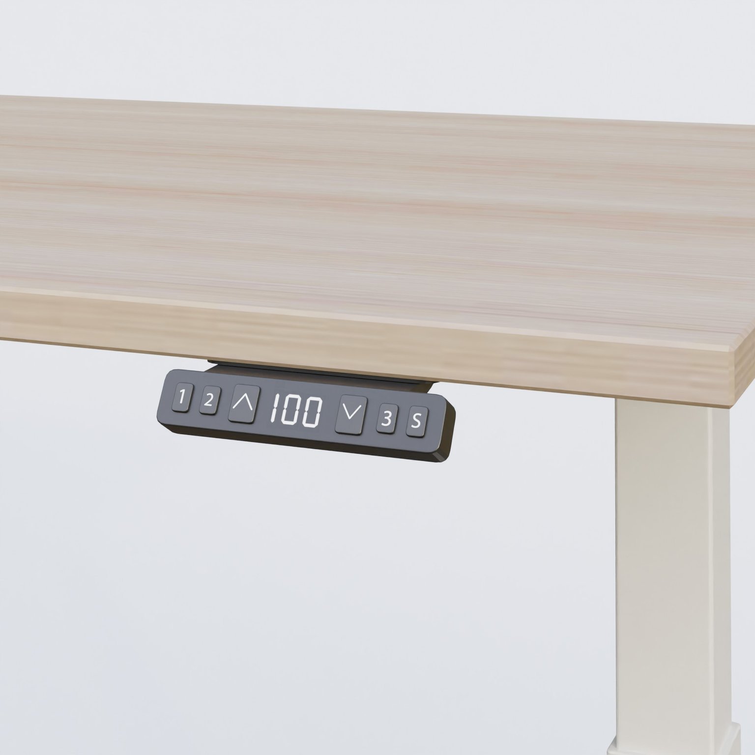 Poste solo 140*70 réglable en hauteur éléctriquement de 70-120 cm gamme KPro2. Plateau Acacia et pietement Blanc.