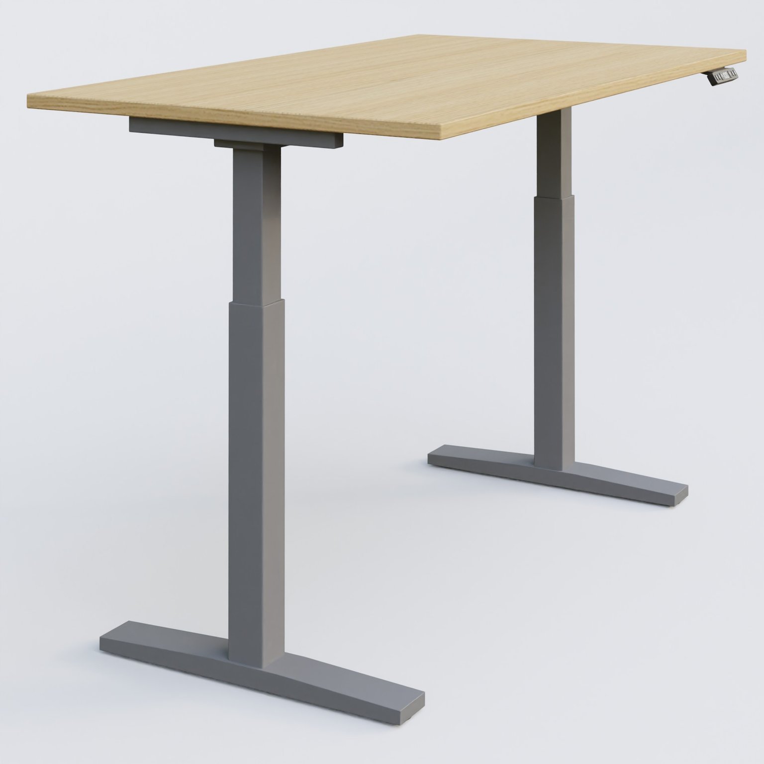 Poste solo 140*70 réglable en hauteur éléctriquement de 70-120 cm gamme KPro2. Plateau Chêne clair et pietement Aluminium.