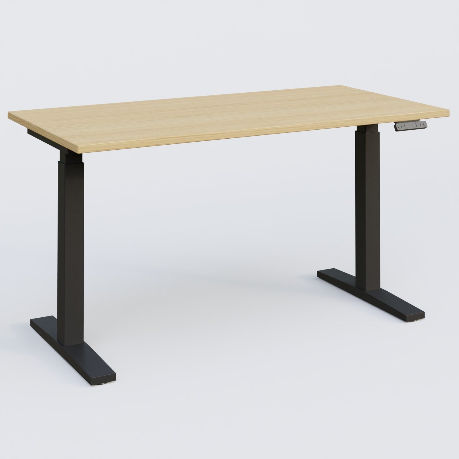 Poste solo 140*70 réglable en hauteur éléctriquement de 70-120 cm gamme KPro2. Plateau Chêne clair et pietement Noir.