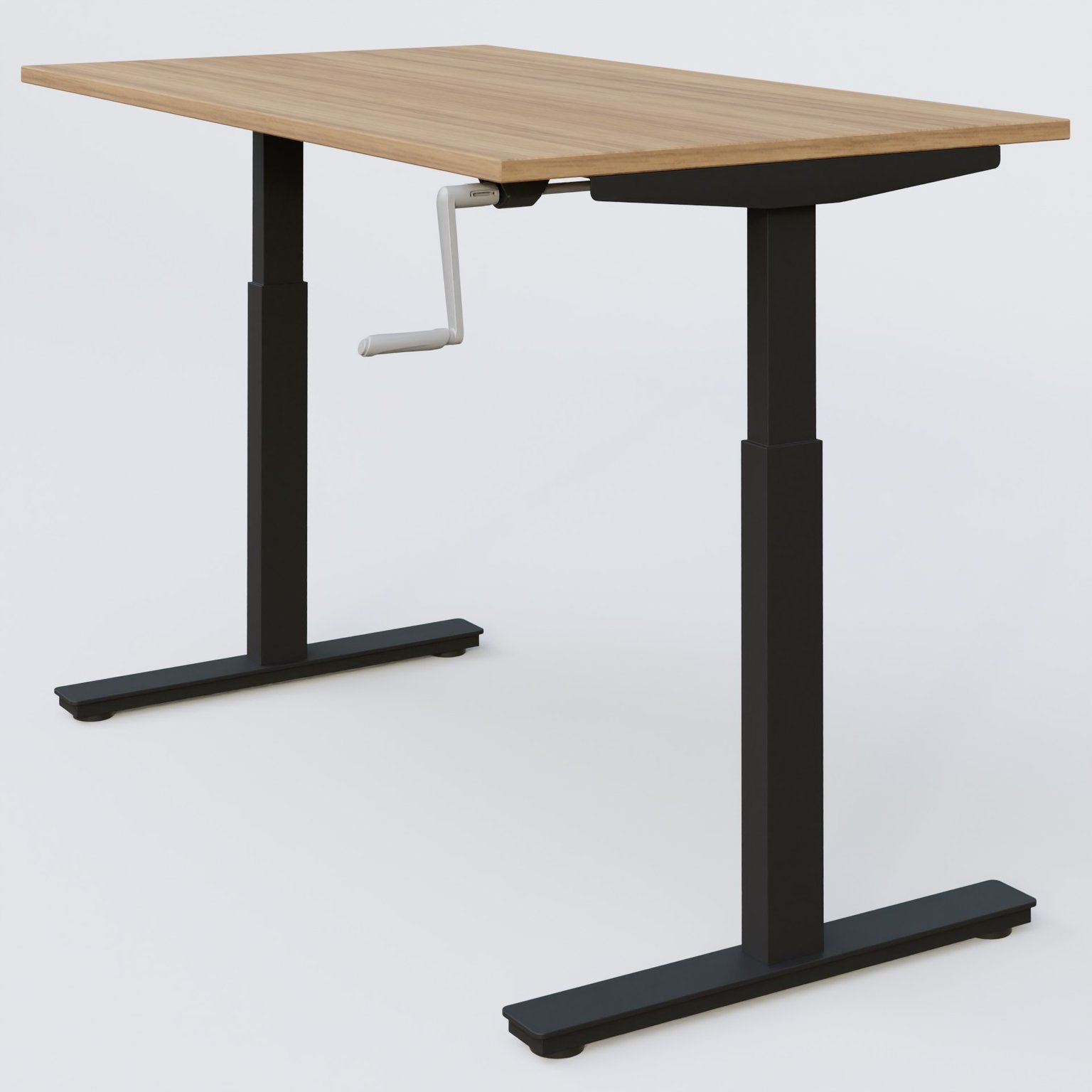 Plan droit hauteur réglable de 70 à 116 cm avec manivelle rétractable sous le plateau. Gamme KPr01 avec plateau de 140*70 cm en 25 mm d'épaisseur.