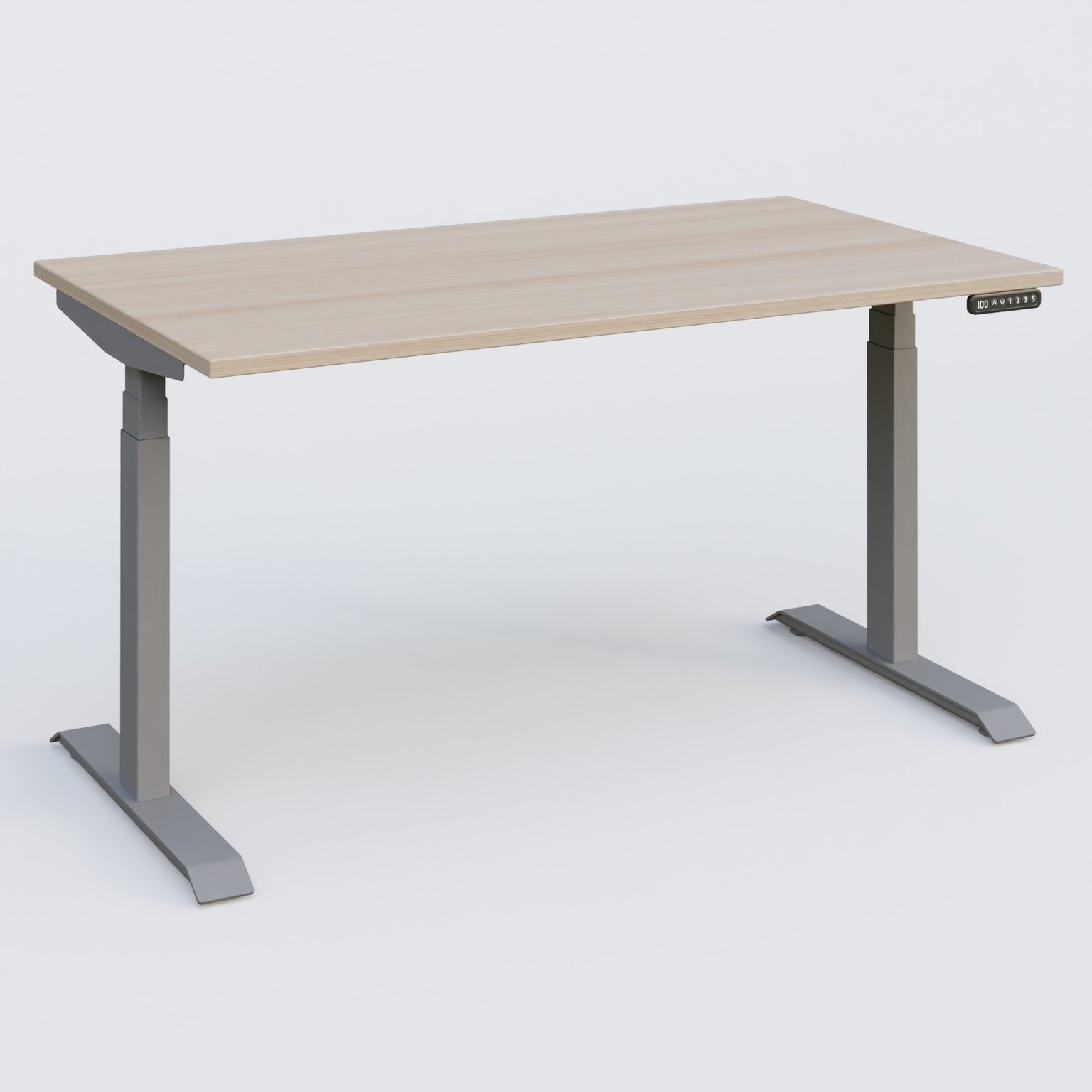 Poste solo 140*80 réglable en hauteur éléctriquement de 65-130 cm gamme KPro3. Plateau Chêne clair et pietement Aluminium. cheneCe Aluminium (AL)