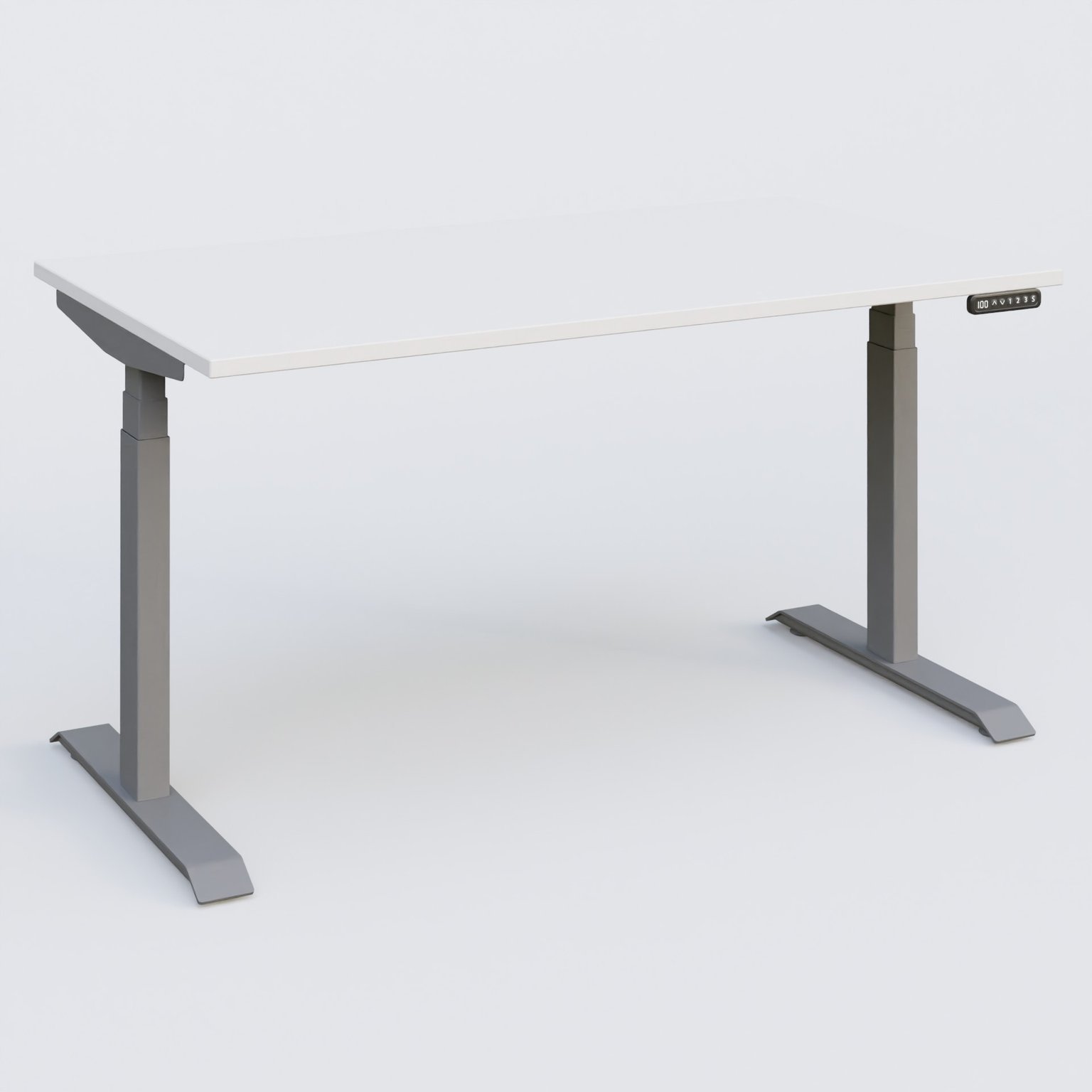 Poste solo 140*80 réglable en hauteur éléctriquement de 65-130 cm gamme KPro3. Plateau Blanc et pietement Aluminium.