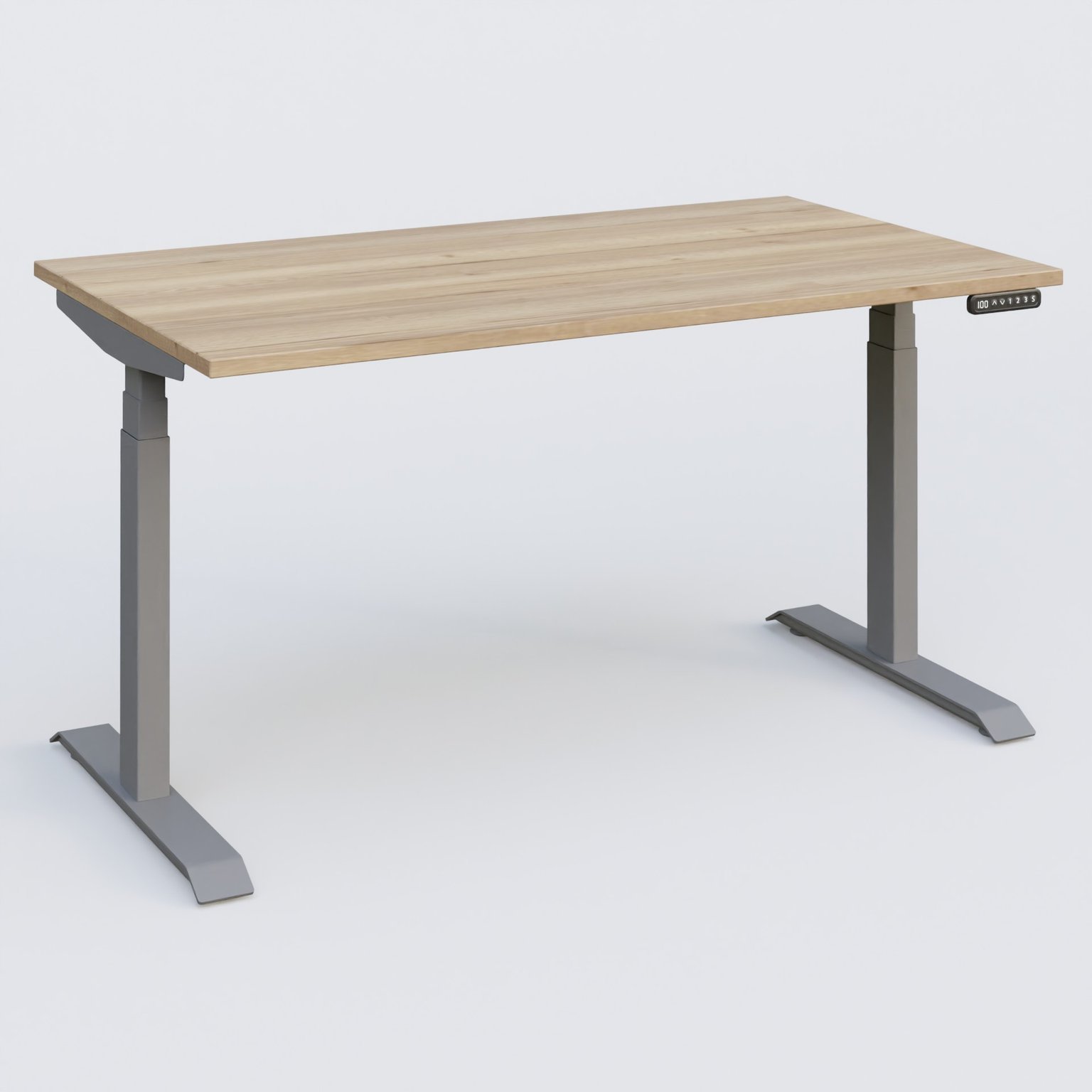 Poste solo 140*80 réglable en hauteur éléctriquement de 65-130 cm gamme KPro3. Plateau Chêne naturel et pietement Aluminium.