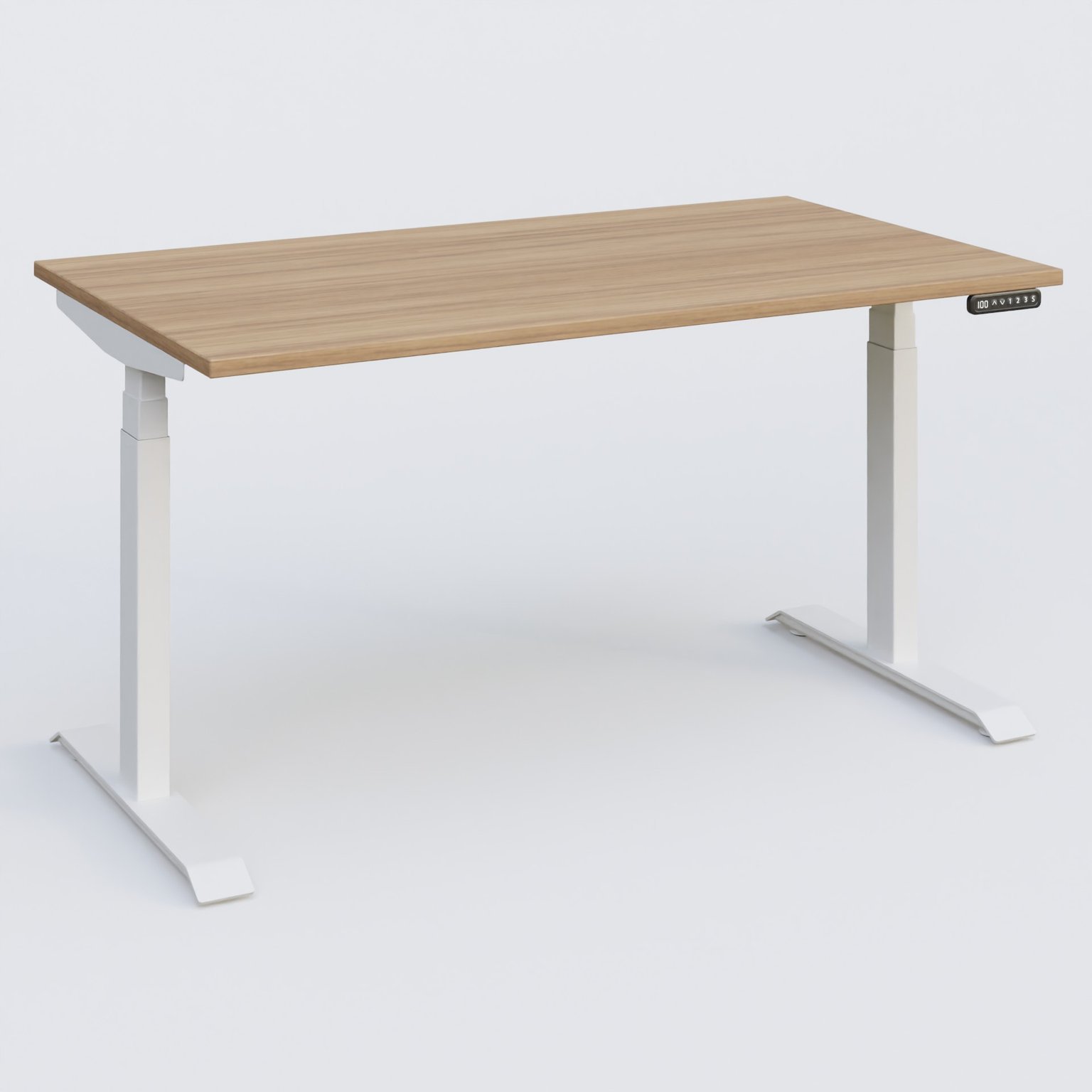 Poste solo 140*80 réglable en hauteur éléctriquement de 65-130 cm gamme KPro3. Plateau Noyer et pietement Blanc.