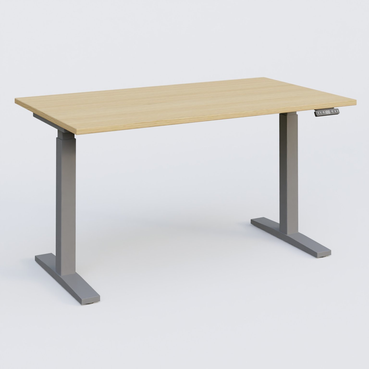 Poste solo 140*80 réglable en hauteur éléctriquement de 70-120 cm gamme KPro2. Plateau Chêne clair et pietement Aluminium.