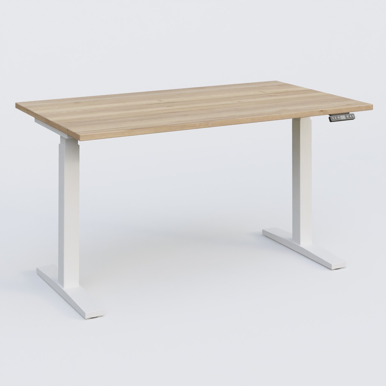 Poste solo 140*80 réglable en hauteur éléctriquement de 70-120 cm gamme KPro2. Plateau Chêne naturel et pietement Blanc.