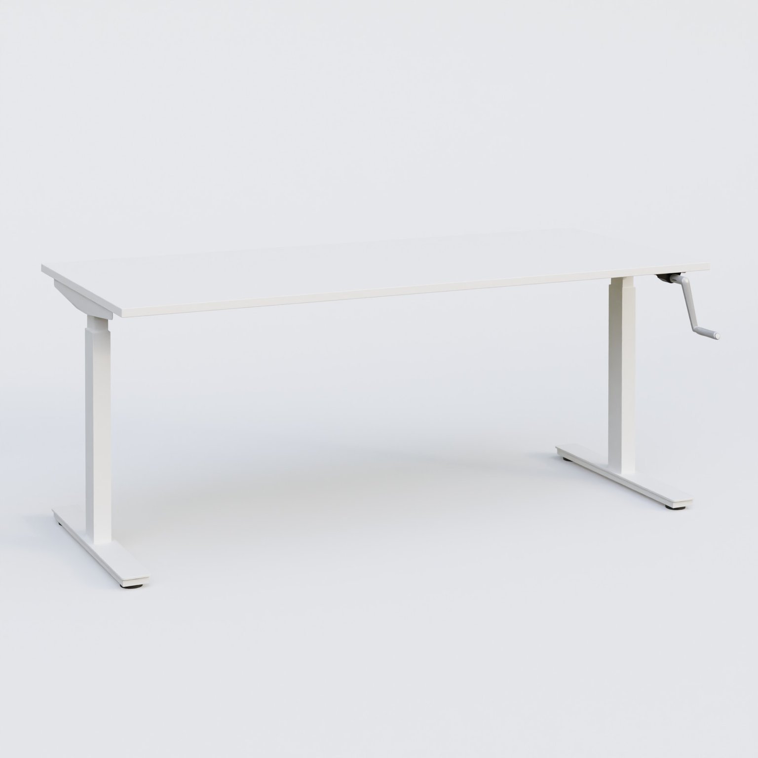 Plan droit hauteur réglable de 70 à 116 cm avec manivelle rétractable sous le plateau. Gamme KPr01 avec plateau de 160*80 cm en 25 mm d'épaisseur.