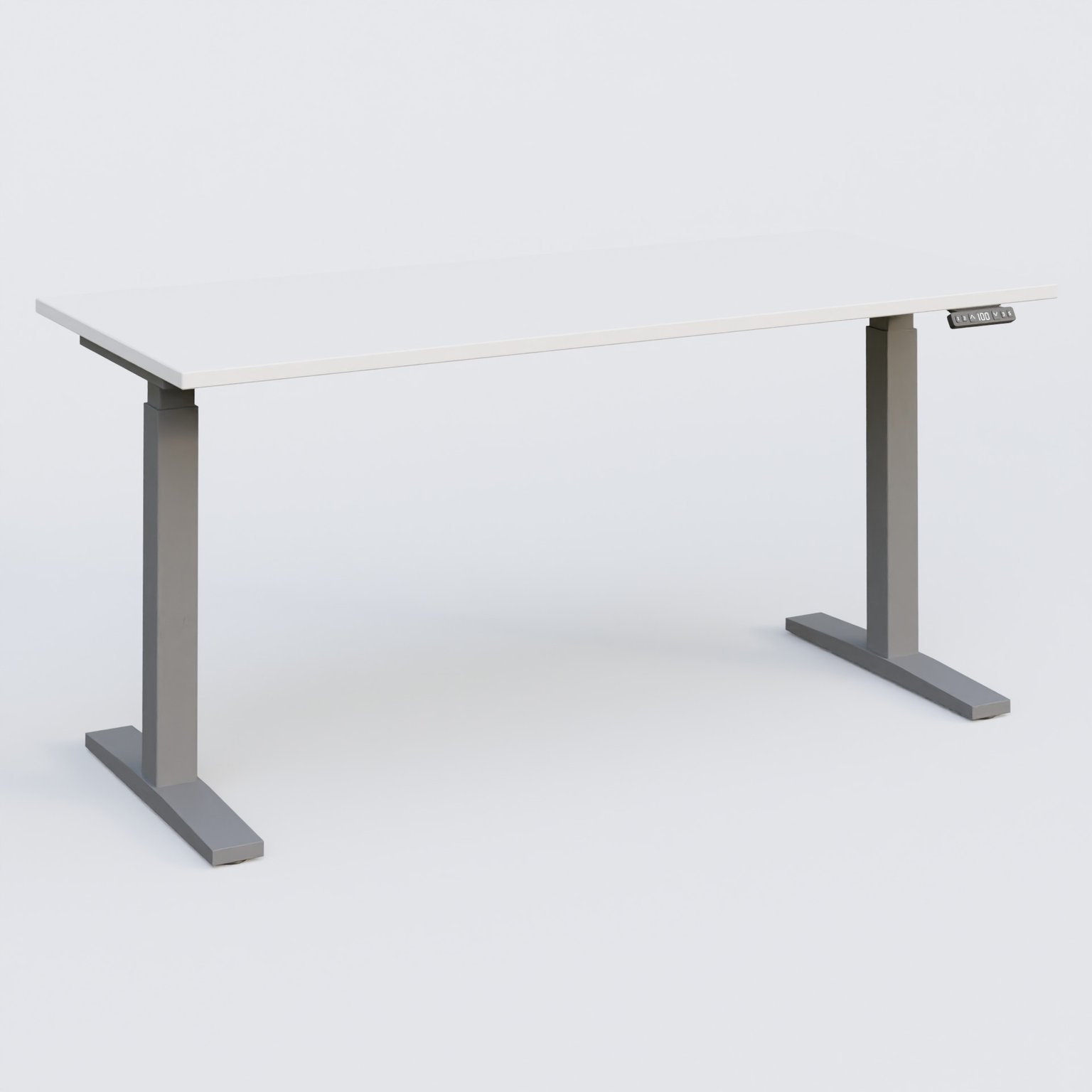 Poste solo 160*70 réglable en hauteur éléctriquement de 70-120 cm gamme KPro2. Plateau Blanc et pietement Aluminium.