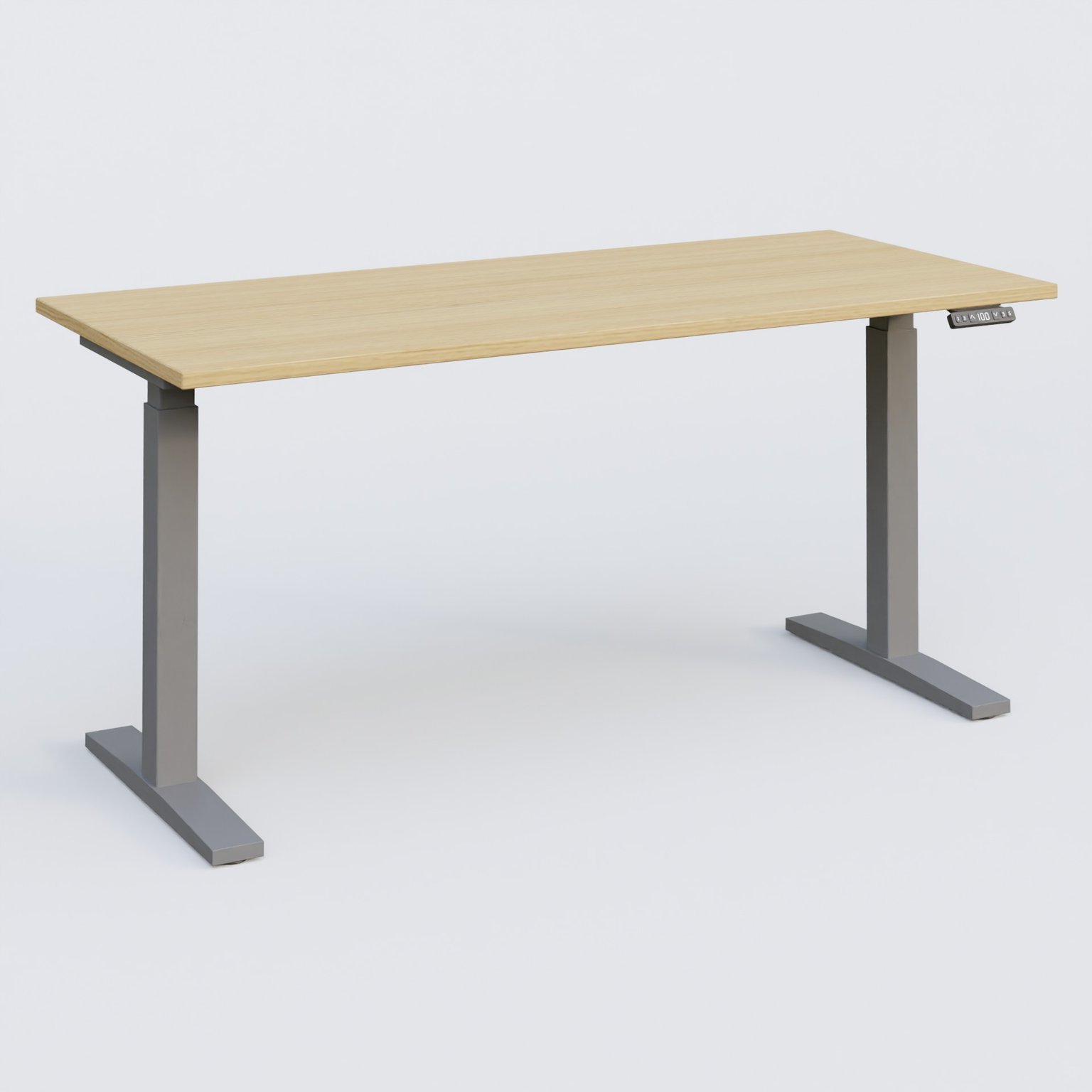 Poste solo 160*70 réglable en hauteur éléctriquement de 70-120 cm gamme KPro2. Plateau Chêne clair et pietement Aluminium.