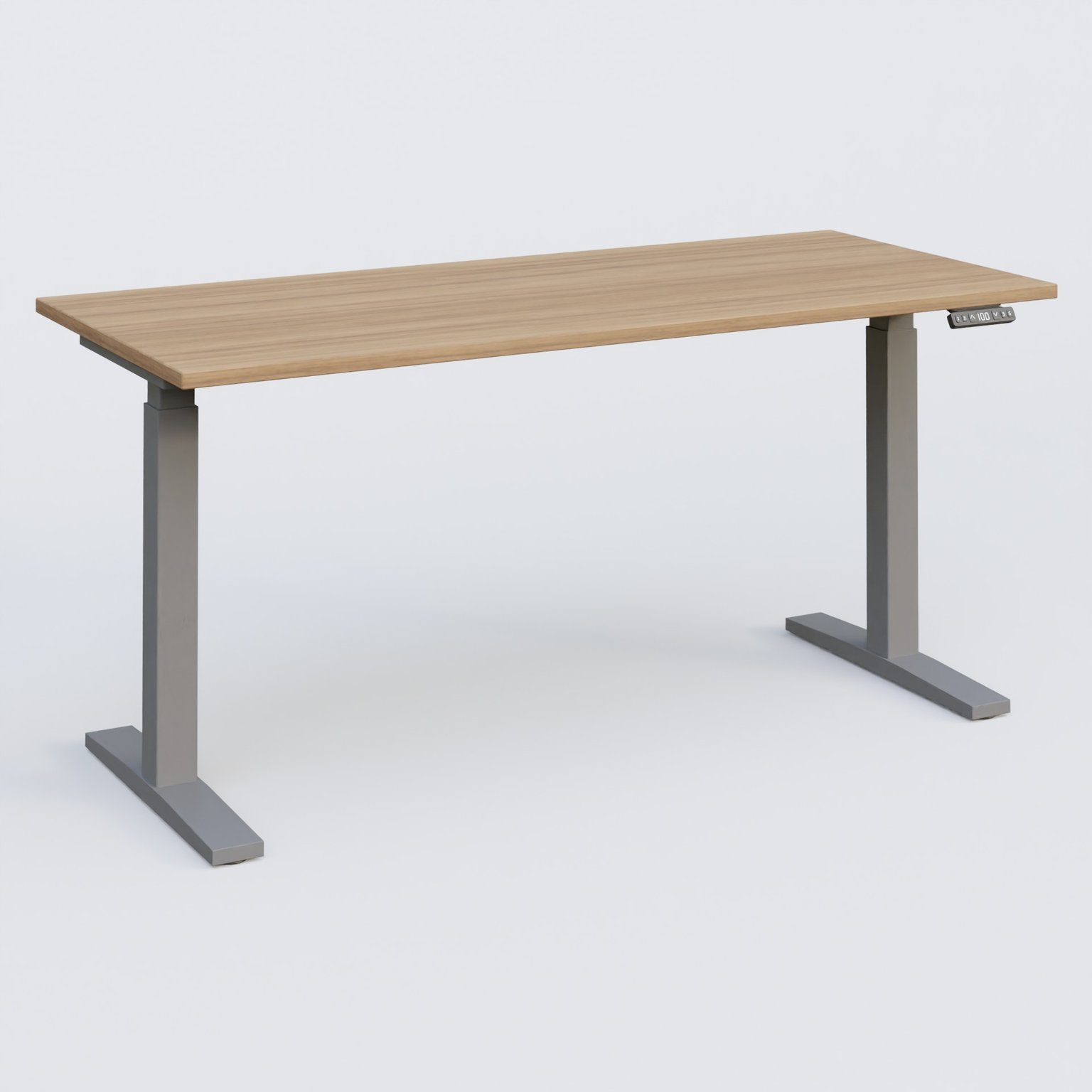 Poste solo 160*70 réglable en hauteur éléctriquement de 70-120 cm gamme KPro2. Plateau Noyer et pietement Aluminium.