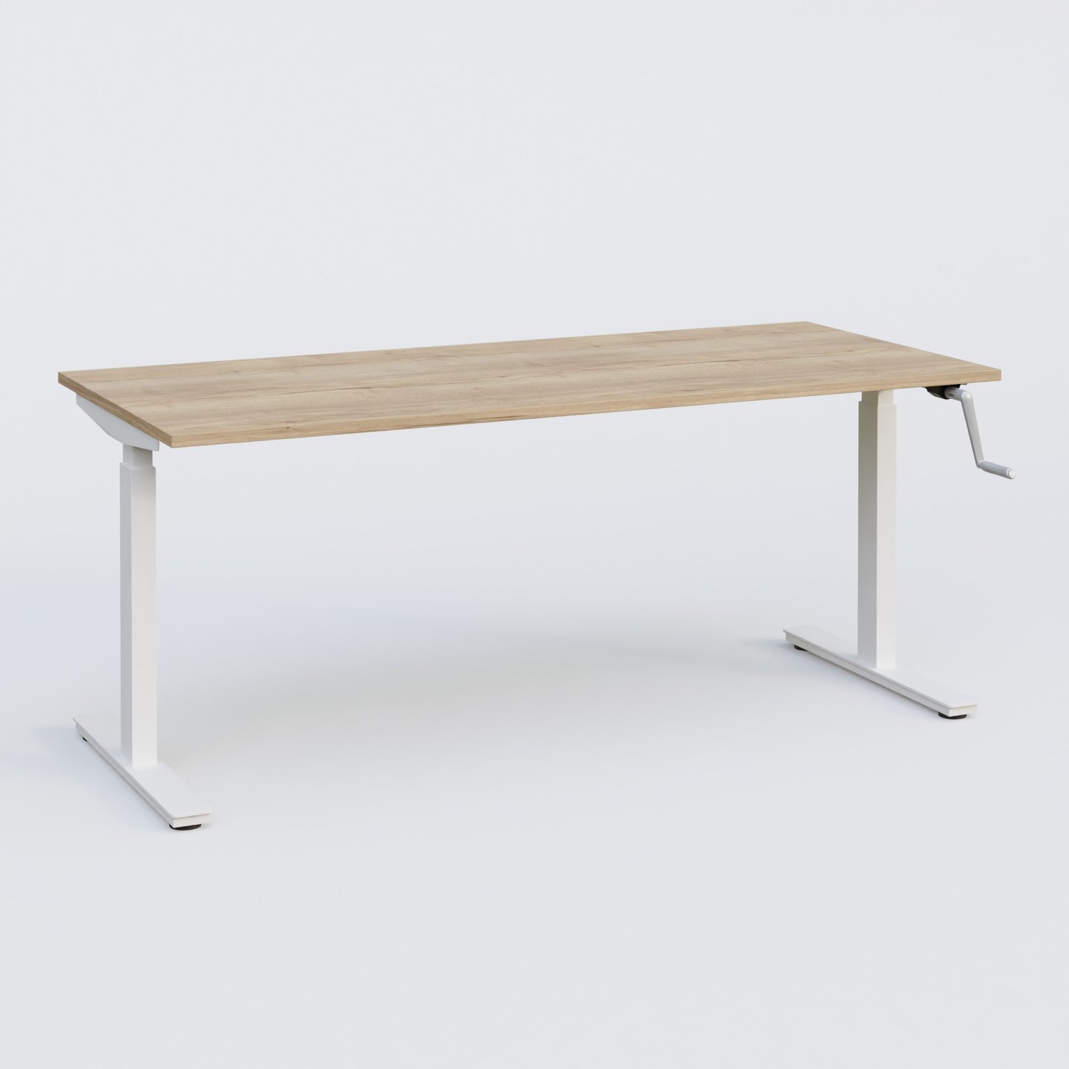 Poste solo 160*70 réglable en hauteur manuel 70-116 cm gamme KPro1. Plateau Chêne naturel et pietement Blanc.