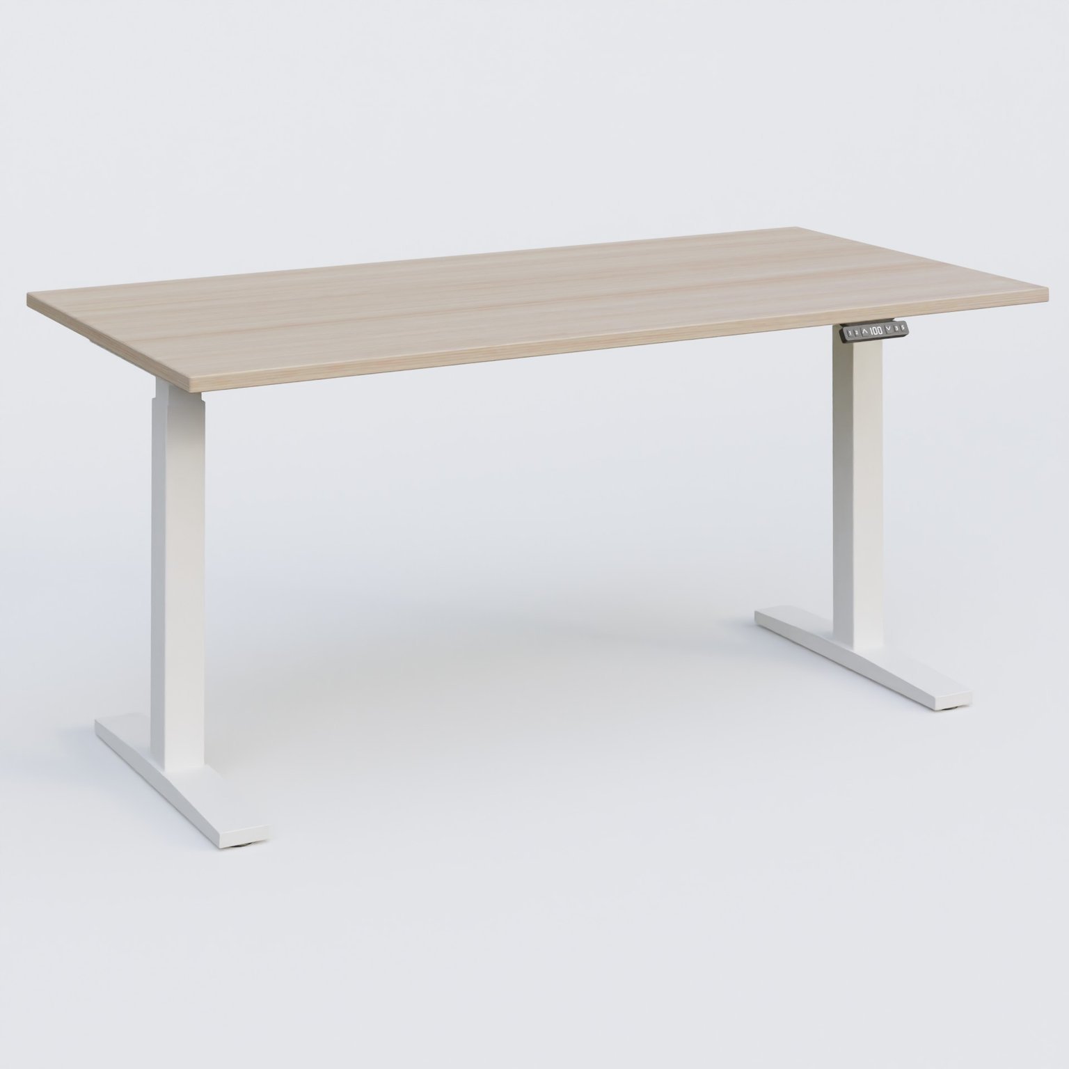 Poste solo 160*80 réglable en hauteur éléctriquement de 70-120 cm gamme KPro2. Plateau Acacia et pietement Blanc.