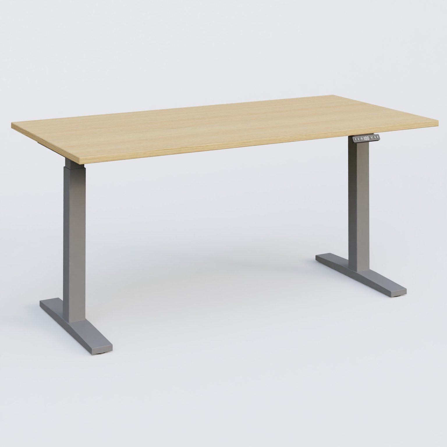 Poste solo 160*80 réglable en hauteur éléctriquement de 70-120 cm gamme KPro2. Plateau Chêne clair et pietement Aluminium.