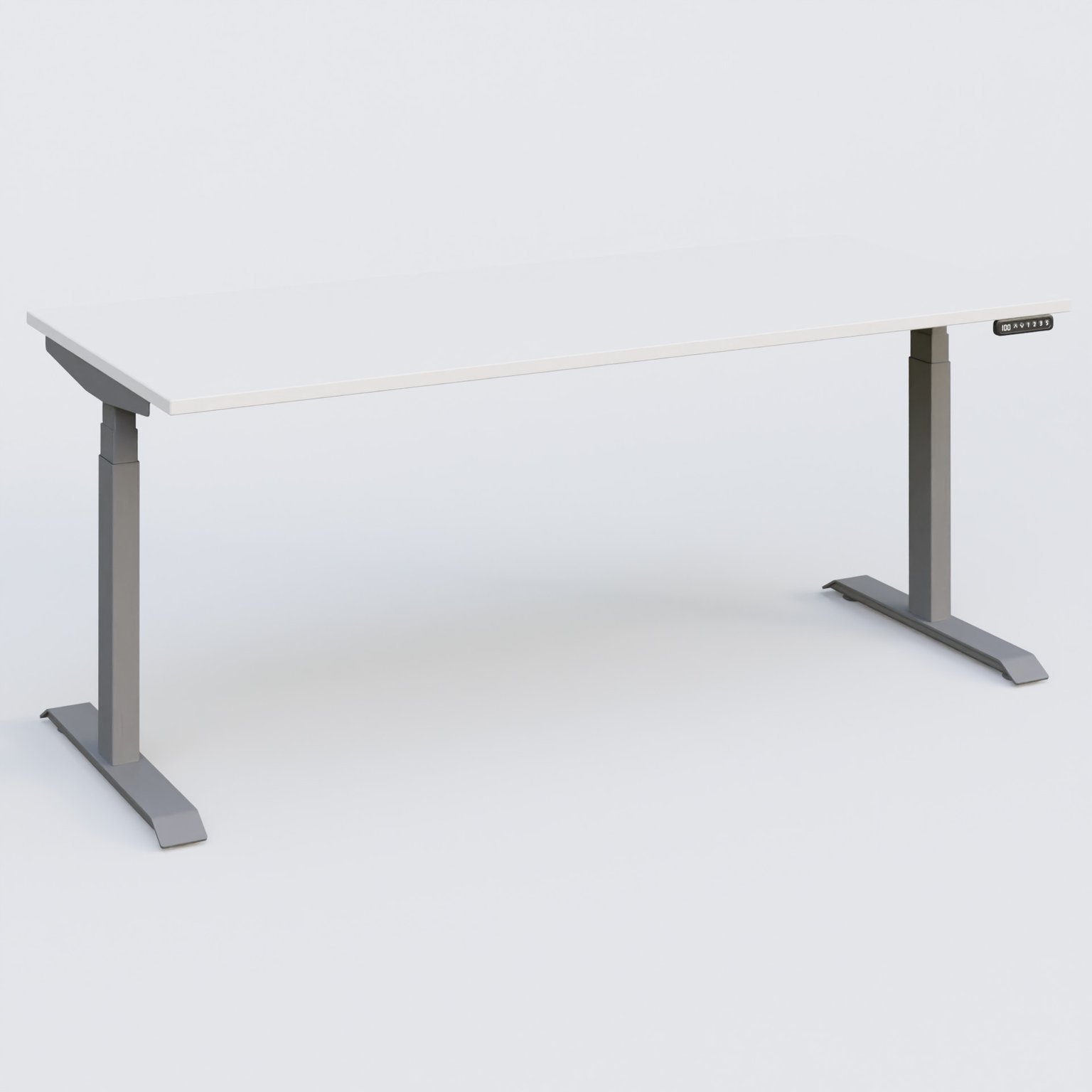 Poste solo 180*80 réglable en hauteur éléctriquement de 65-130 cm gamme KPro3. Plateau Blanc et pietement Aluminium.