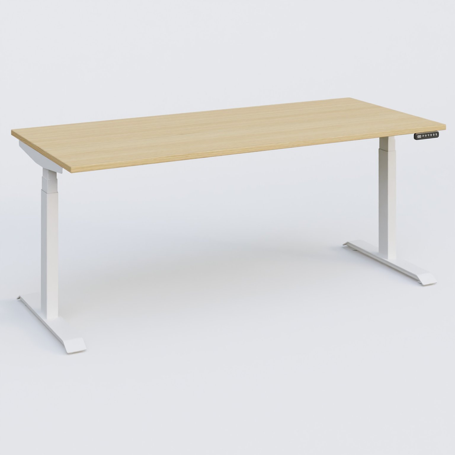 Poste solo 180*80 réglable en hauteur éléctriquement de 65-130 cm gamme KPro3. Plateau Chêne clair et pietement Blanc.