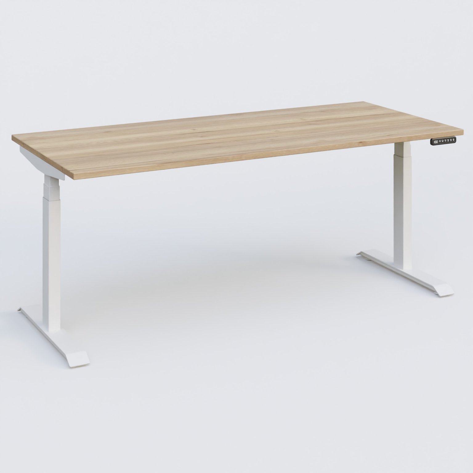 Poste solo 180*80 réglable en hauteur éléctriquement de 65-130 cm gamme KPro3. Plateau Chêne naturel et pietement Blanc.