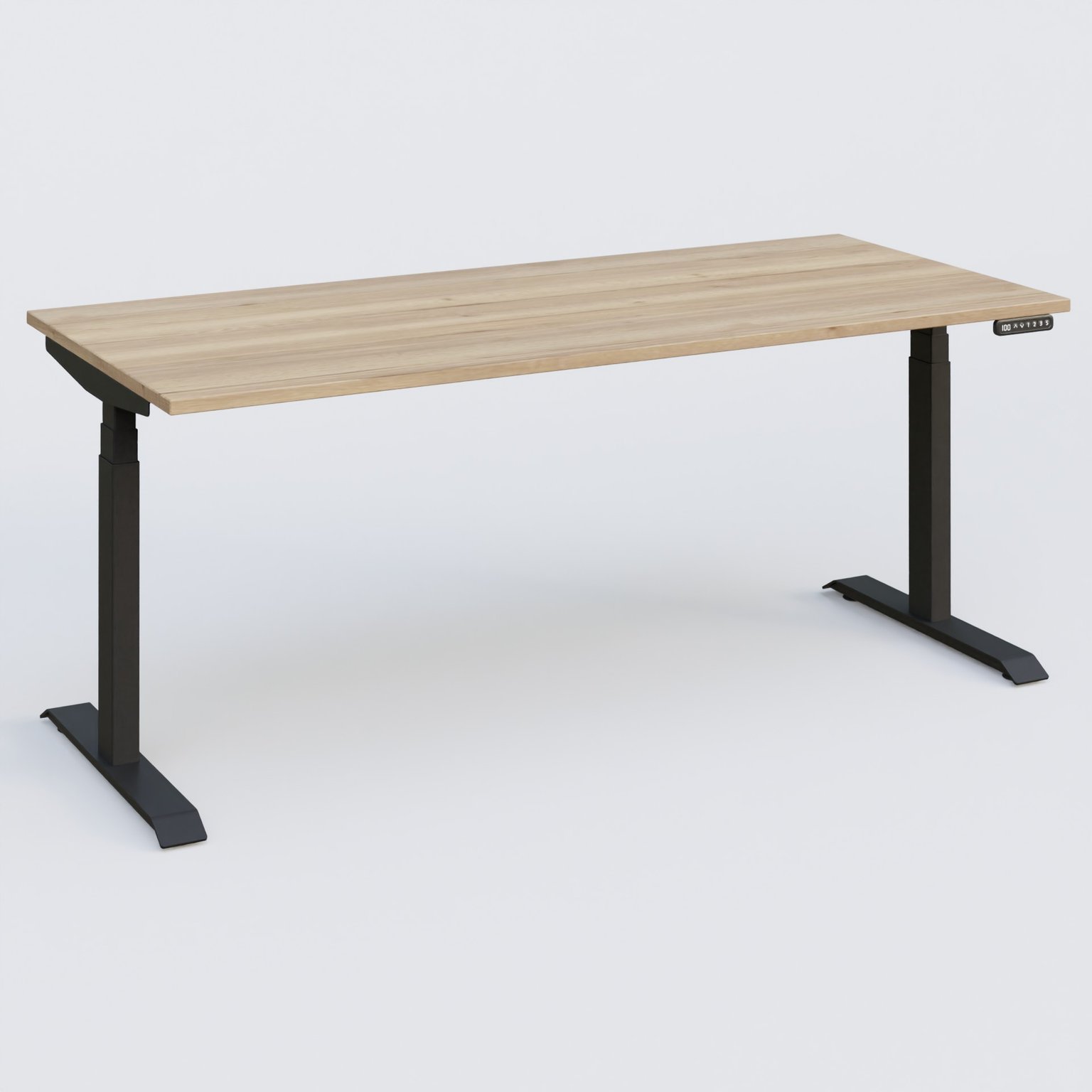 Poste solo 180*80 réglable en hauteur éléctriquement de 65-130 cm gamme KPro3. Plateau Chêne naturel et pietement Noir.