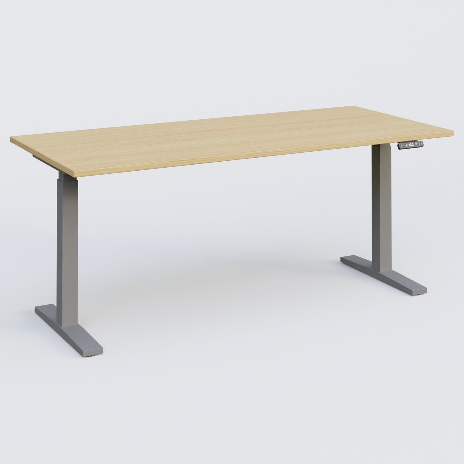 Poste solo 180*80 réglable en hauteur éléctriquement de 70-120 cm gamme KPro2. Plateau Chêne clair et pietement Aluminium.