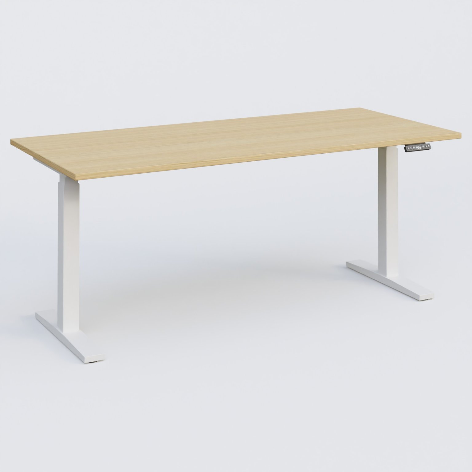 Poste solo 180*80 réglable en hauteur éléctriquement de 70-120 cm gamme KPro2. Plateau Chêne clair et pietement Blanc.