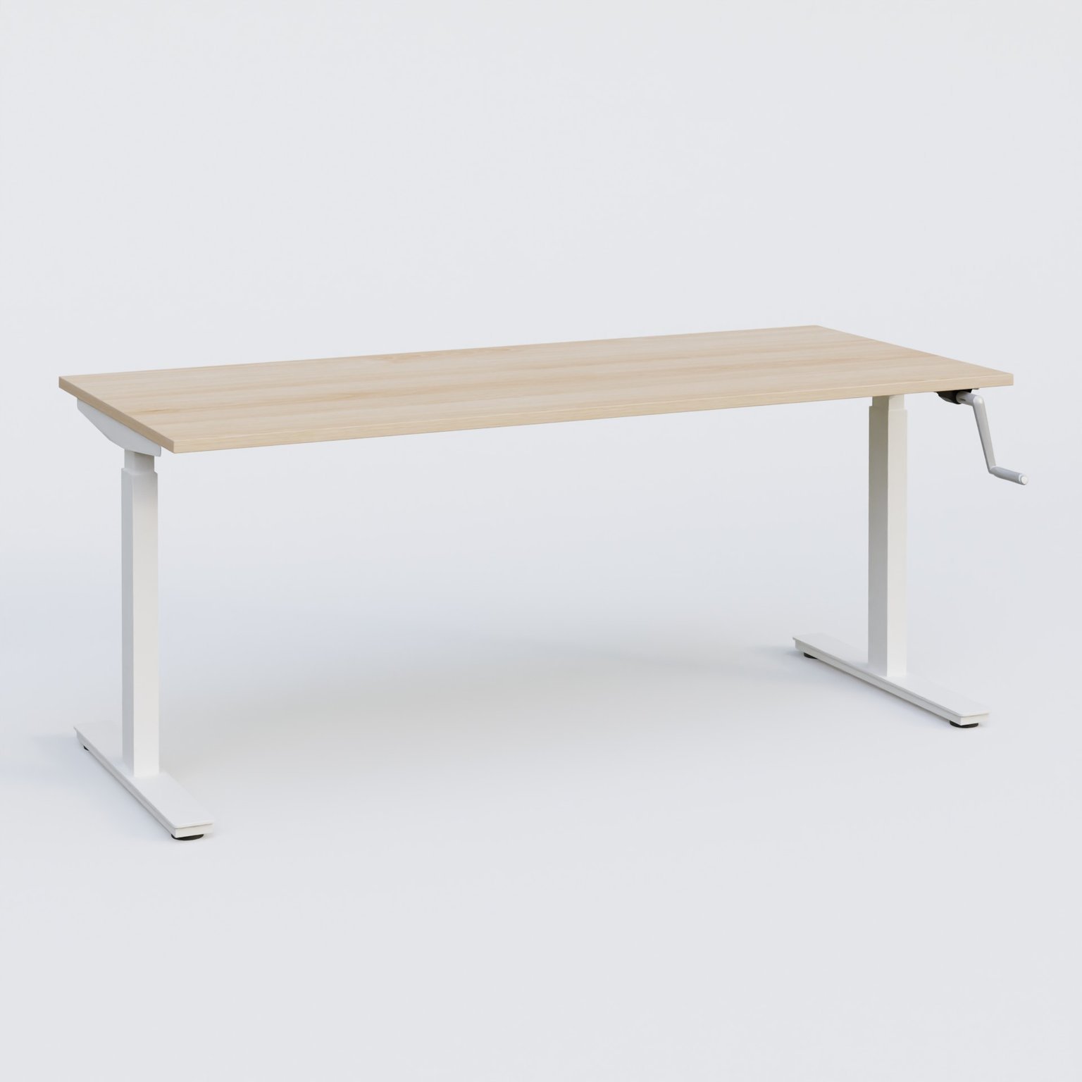 Poste solo 180*80 réglable en hauteur manuel 70-116 cm gamme KPro1. Plateau Hêtre et pietement Blanc.