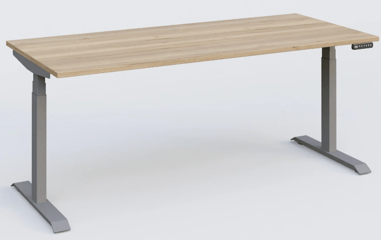 Poste solo 200*80 réglable en hauteur électriquement de 65-130 cm gamme KPro3. Plateau chêne naturel et piètement alu