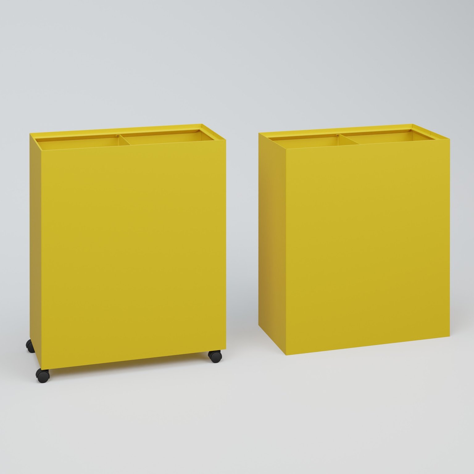 Poubelle 2 Module HT 75 cm Larg. 60 cm Prof. 30 cm avec roulettes . Coffre Jaune