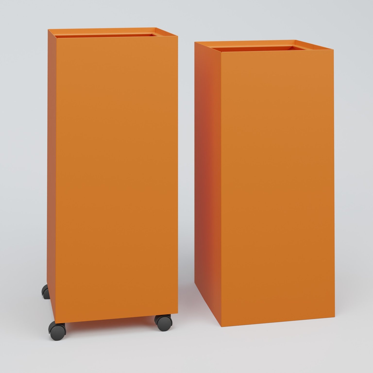 Poubelle 2 Modules HT 75 cm Larg. 30 cm Prof. 60 cm avec roulettes . Coffre Orange