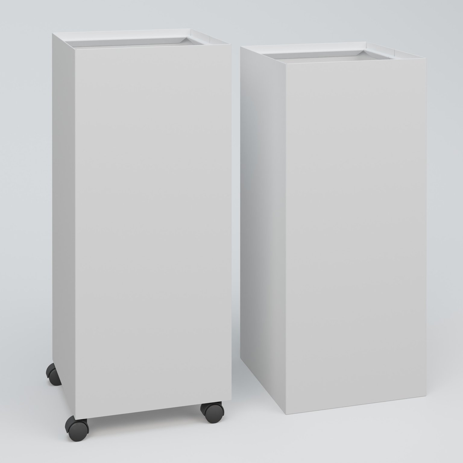 - Poubelle pour le tri sélectif fabriquée en tôle de 8/10ème HT 75 cm Larg. 30 cm Prof. 60 cm avec roulettes . Coffre Blanc