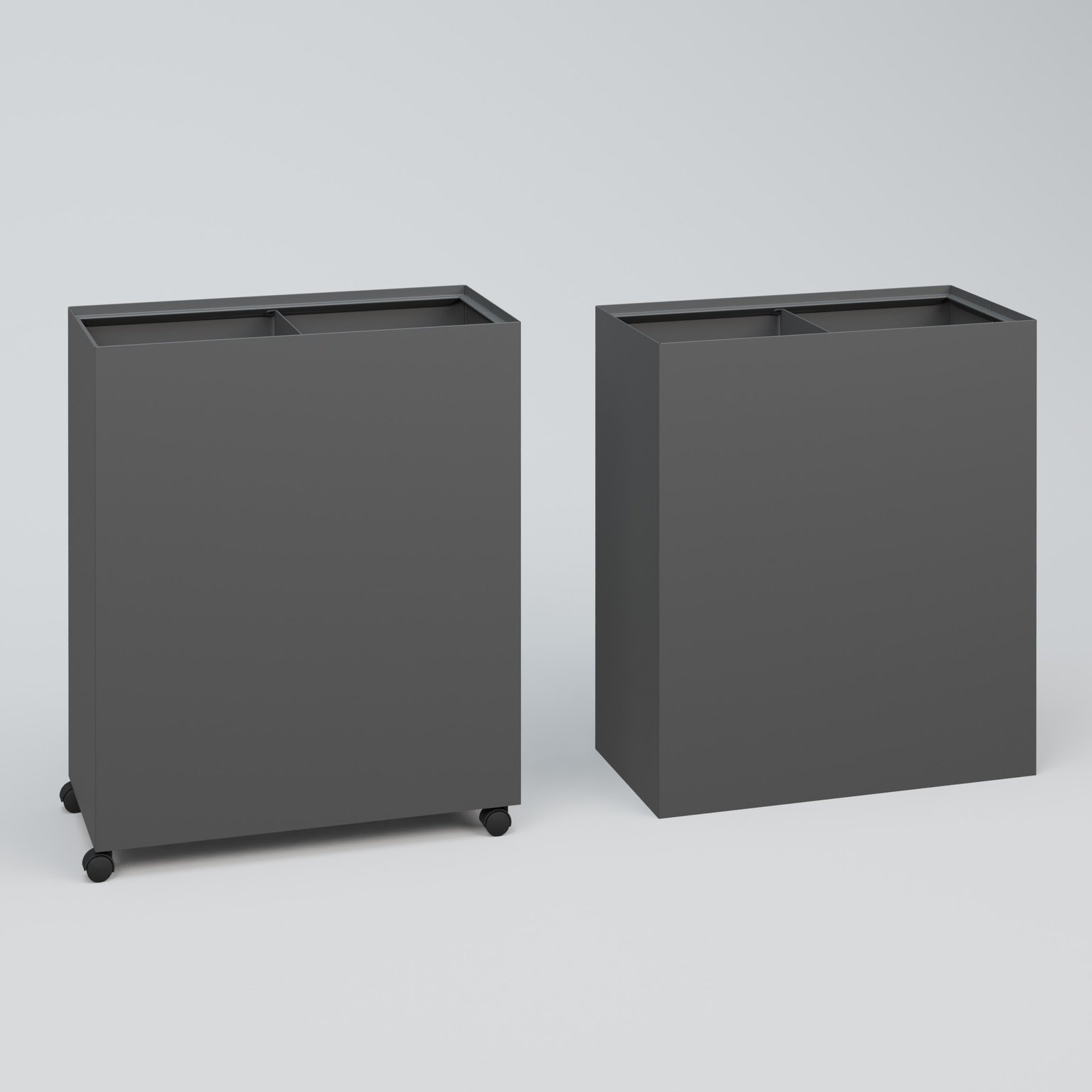 - Poubelle pour le tri sélectif fabriquée en tôle de 8/10ème HT 75 cm Larg. 60 cm Prof. 30 cm avec roulettes . Coffre Anthracite