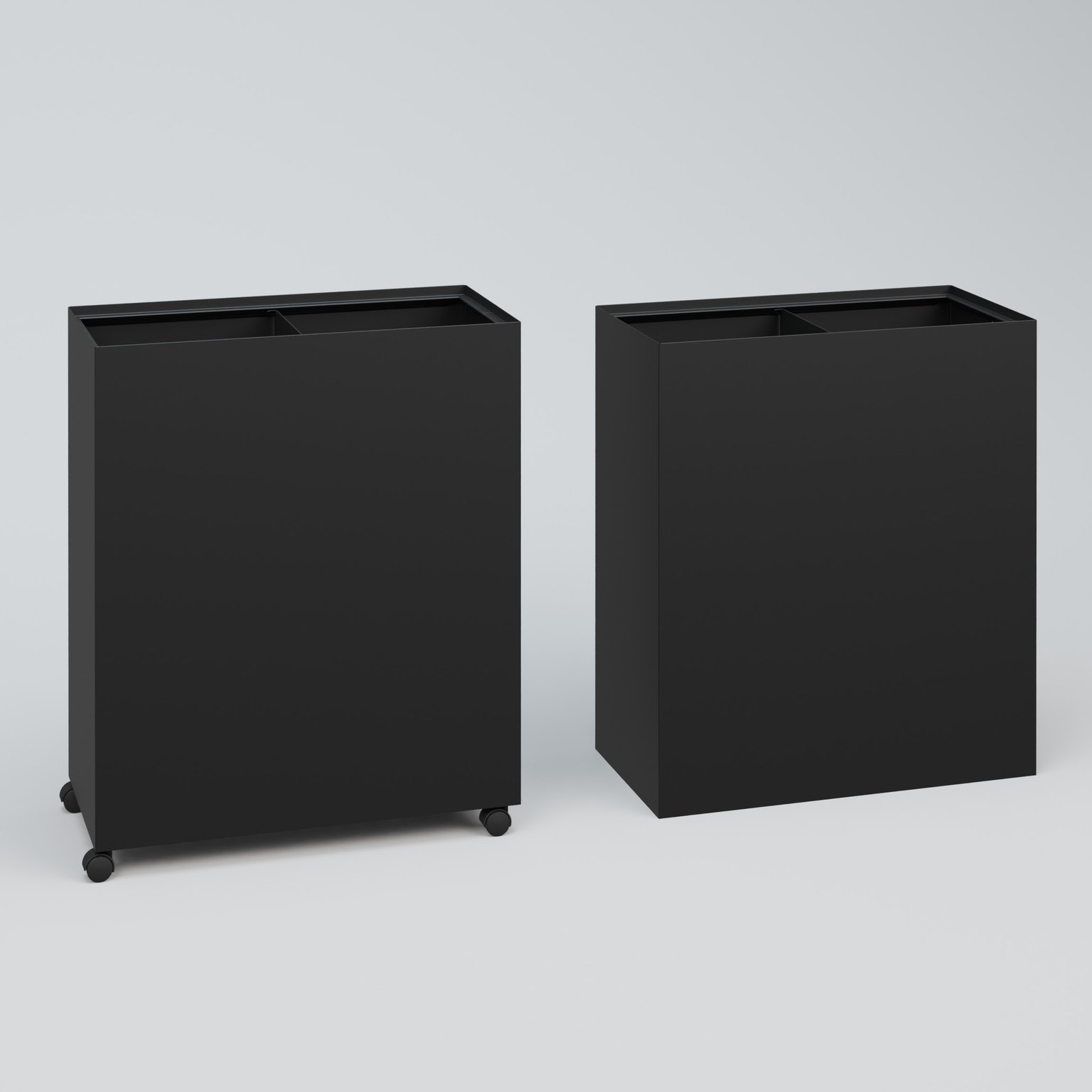 Poubelle pour le tri sélectif fabriquée en tôle de 8/10ème HT 75 cm Larg. 60 cm Prof. 30 cm avec roulettes . Coffre Noir