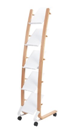 Présentoir sur roulettes comprenant 5 étagères blanc et bois L.36x52xHt165 cm