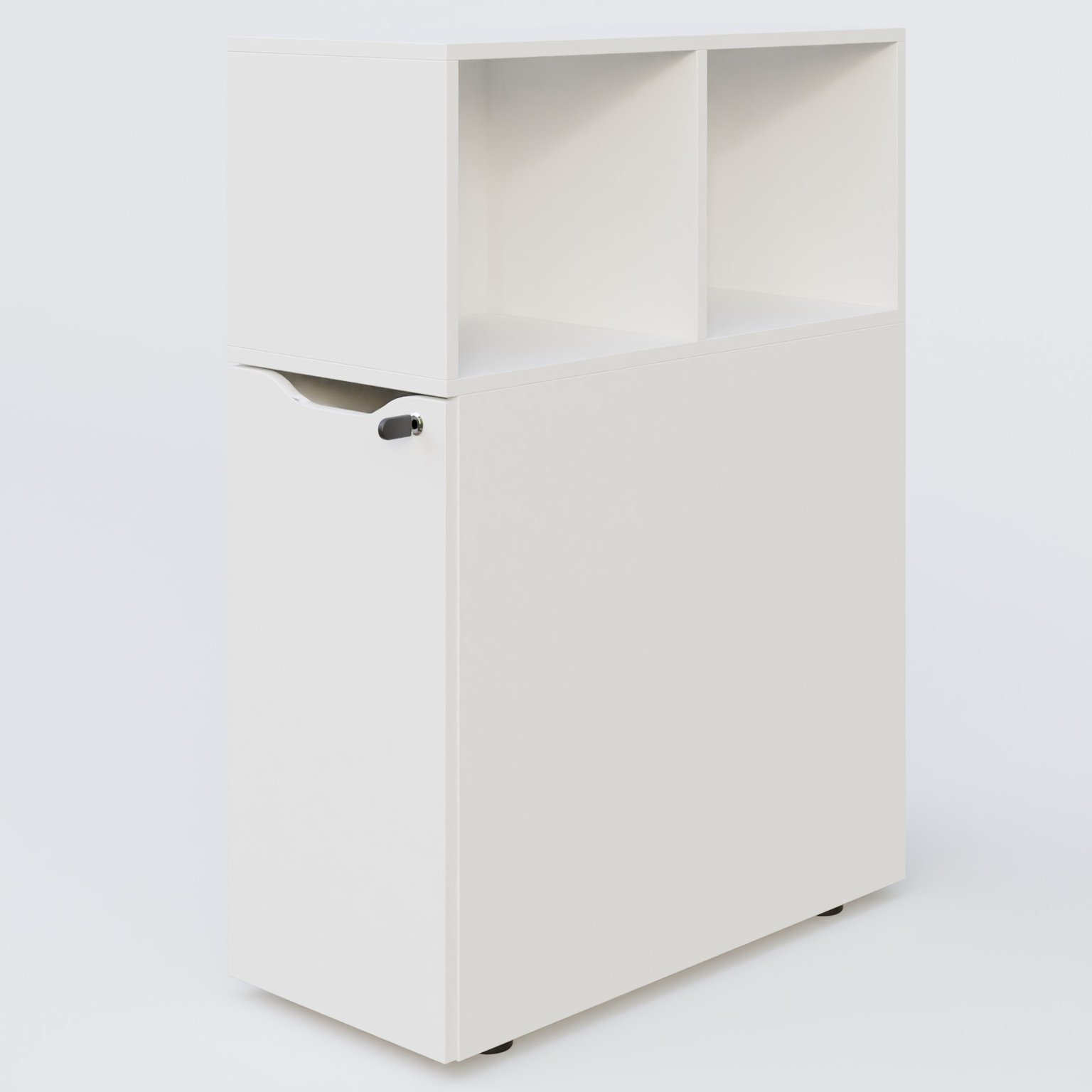 Rangement personnel compact avec niche intégrée. Blanc. P80xL36xH109cm. ouverture à gauche.
