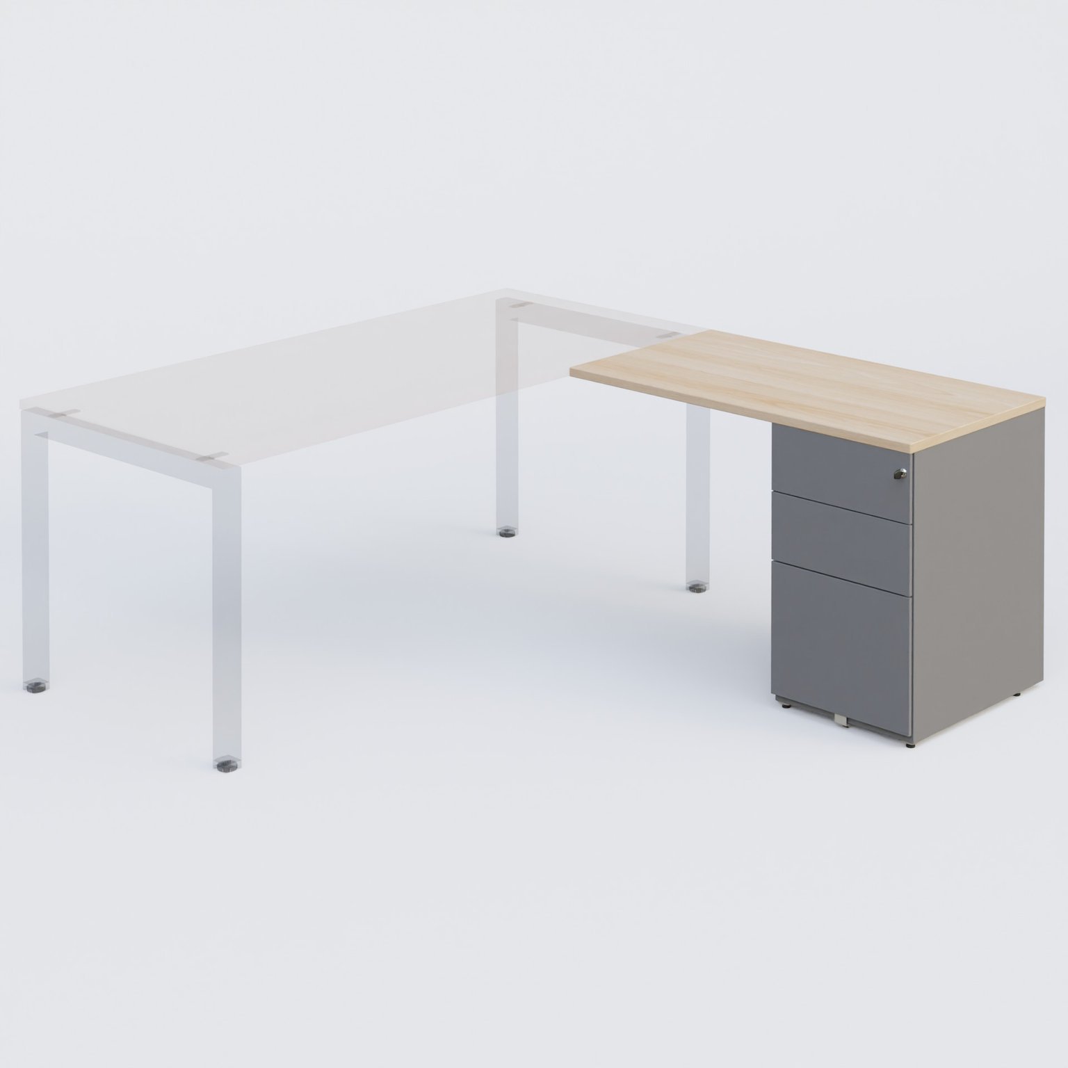 Retour direct sur caisson métallique hauteur de bureau S'adapte à gauche comme à droite sur les plans droits 100 x 60 cm Plateau épaisseur 25 mm
