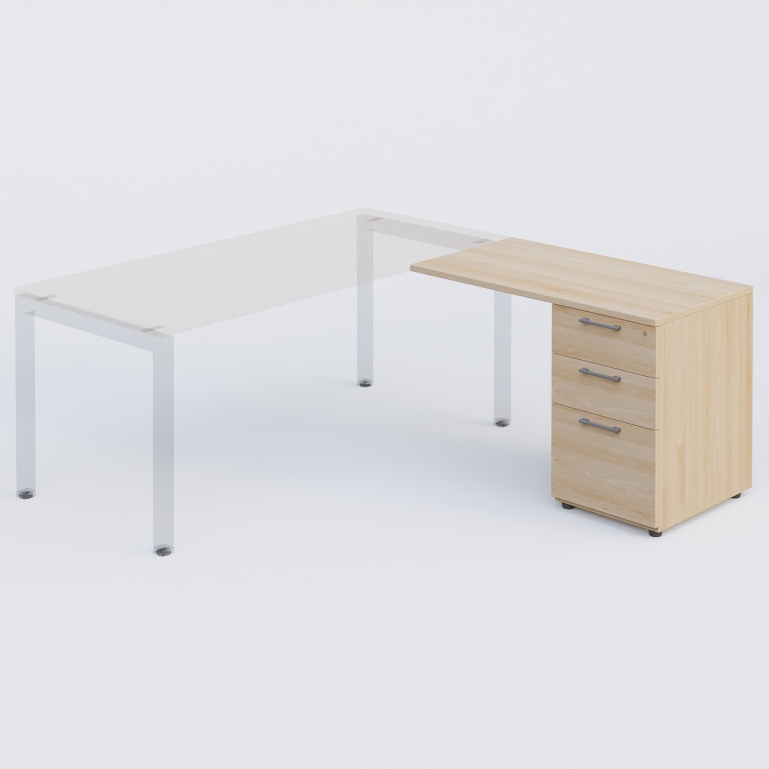 - Retour direct 120x60cm sur caisson porteur bois 3 tiroirs hêtre/aluminium