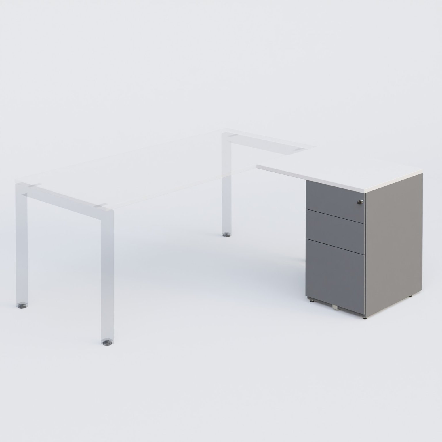Retour direct 60x80cm sur caisson porteur métal 3 tiroirs blanc/aluminium - sur délai