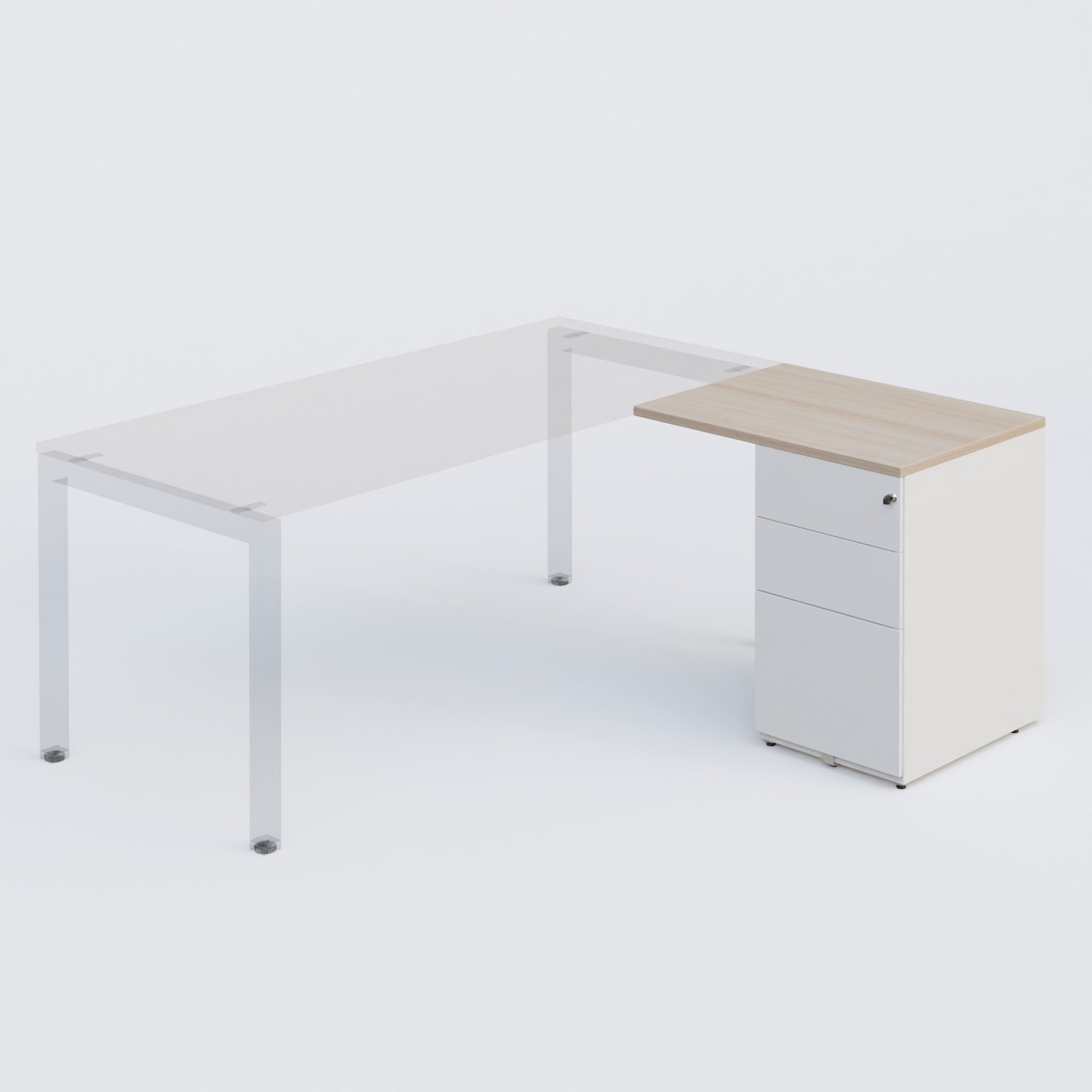 Retour direct sur caisson métallique hauteur de bureau S'adapte à gauche comme à droite sur les plans droits 80 x 60 cm Plateau épaisseur 25 mm