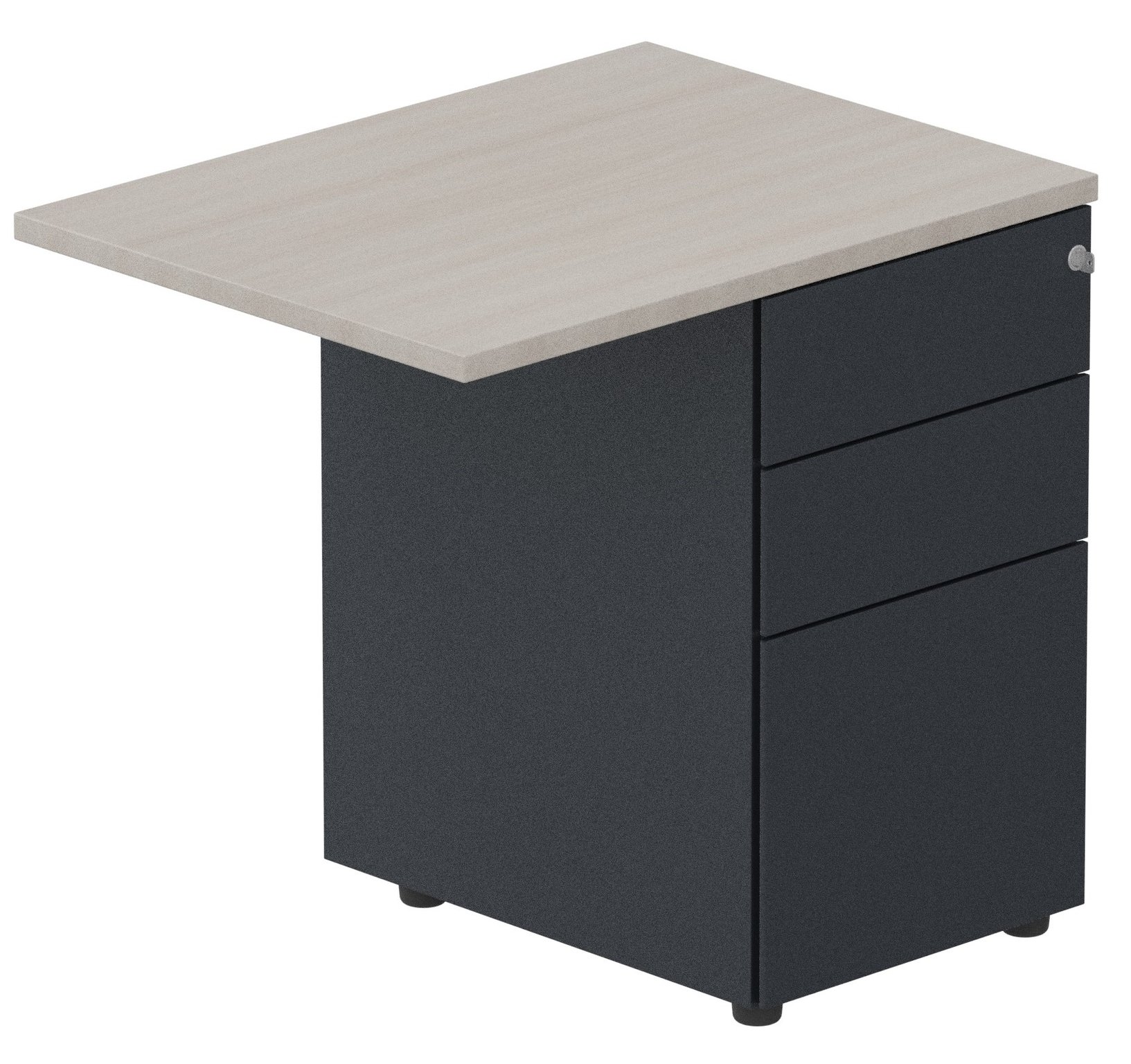 Retour sur caisson métallique hauteur de bureau P.60 cm S'adapte à gauche comme à droite sur les plans droits DIMENSIONS : 120 x 60 cm Plateau épaisseur 25 mm Plateau Acacia et structure Anthracite