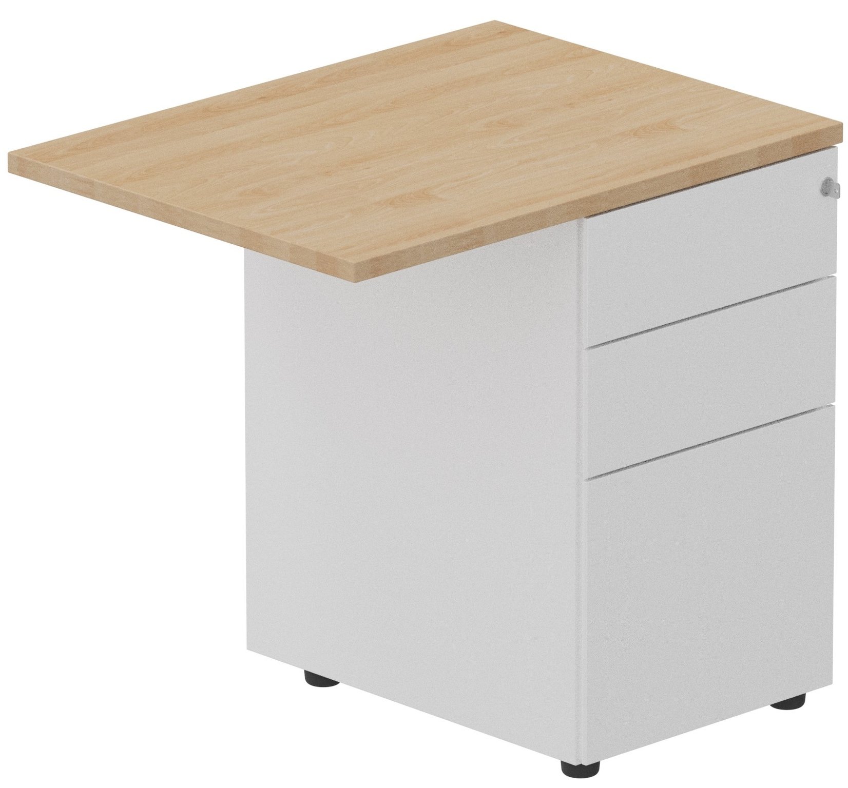 Retour sur caisson métallique hauteur de bureau p.60 cm S'adapte à gauche comme à droite sur les plans droits DIMENSIONS : 120 x 60 cm Plateau épaisseur 25 mm Plateau Hêtre et structure Blanche