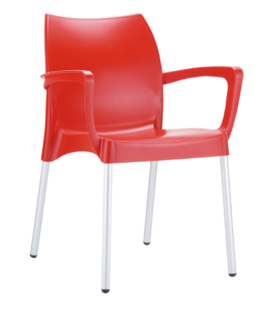RHODES- Fauteuil empilable en polypropylène structure en aluminium anodisè -Finition assise rouge